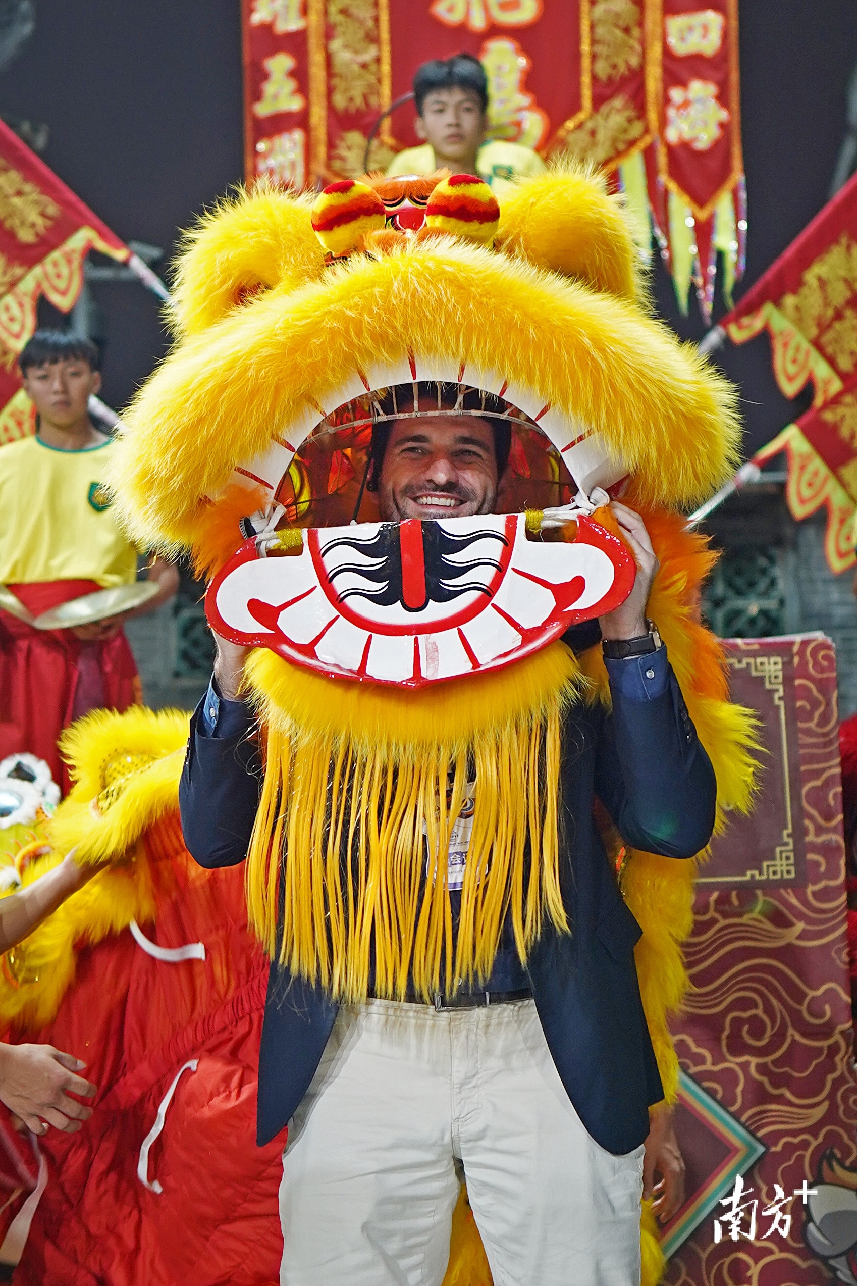外国专家扛起狮头,笑容正是对这项非遗技艺的满心喜爱。