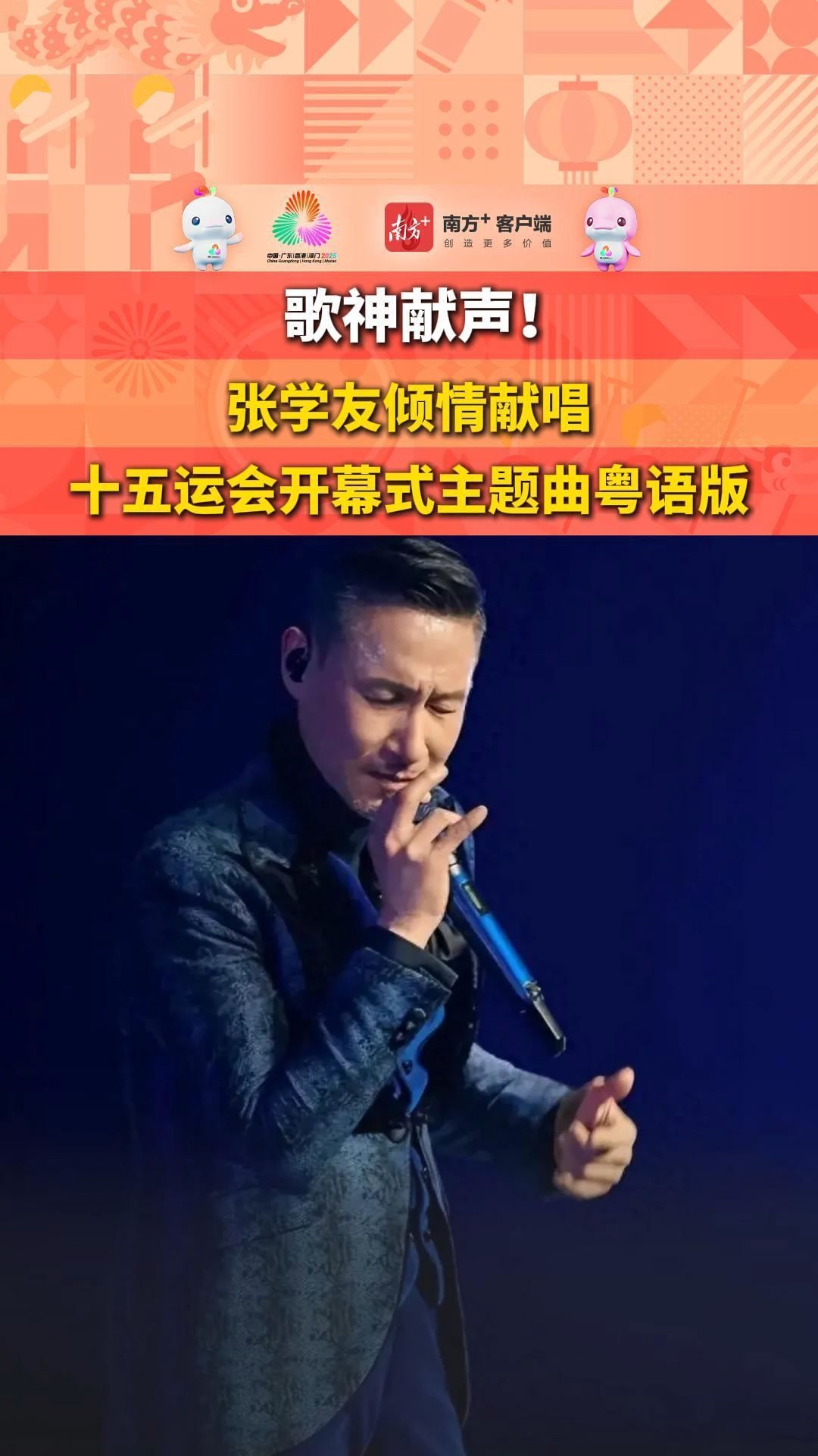 歌神献声!张学友倾情献唱十五运会开幕式主题曲粤语版