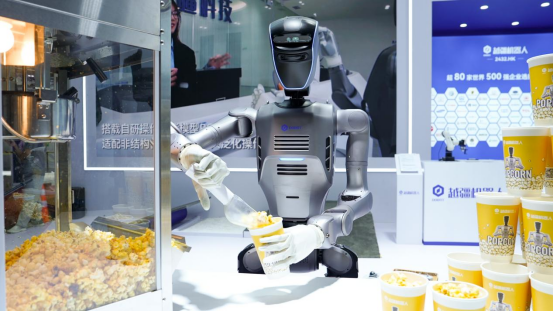 越疆科技具身智能人形机器人DOBOT AtomⅡ,现场展现“厨艺”。