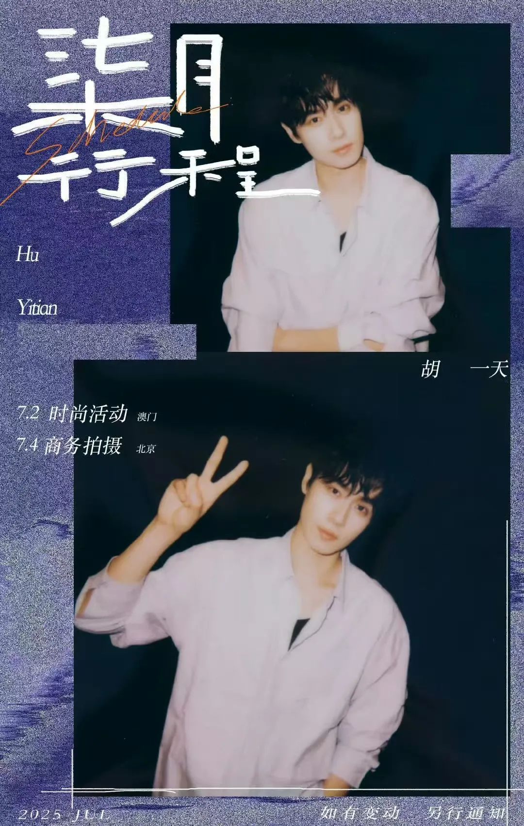 胡一天工作室公布的近几个月的行程单,显得很空白,为数不多的活动是时尚盛典、时装周、商务活动。