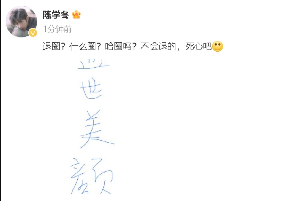 车祸发生后,陈学冬长久未更新动态,疗养期间传出退圈传闻。