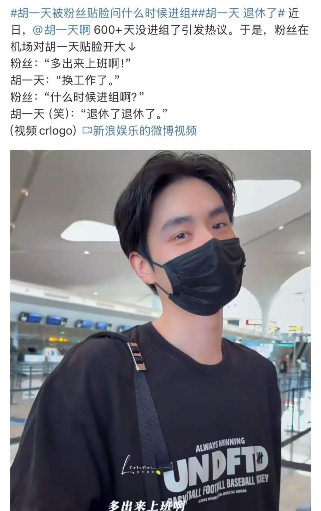 这两天,有粉丝在机场和胡一天聊天,这对话真的是又尴尬又有点心酸,胡一天说自己换工作了,说退休了。