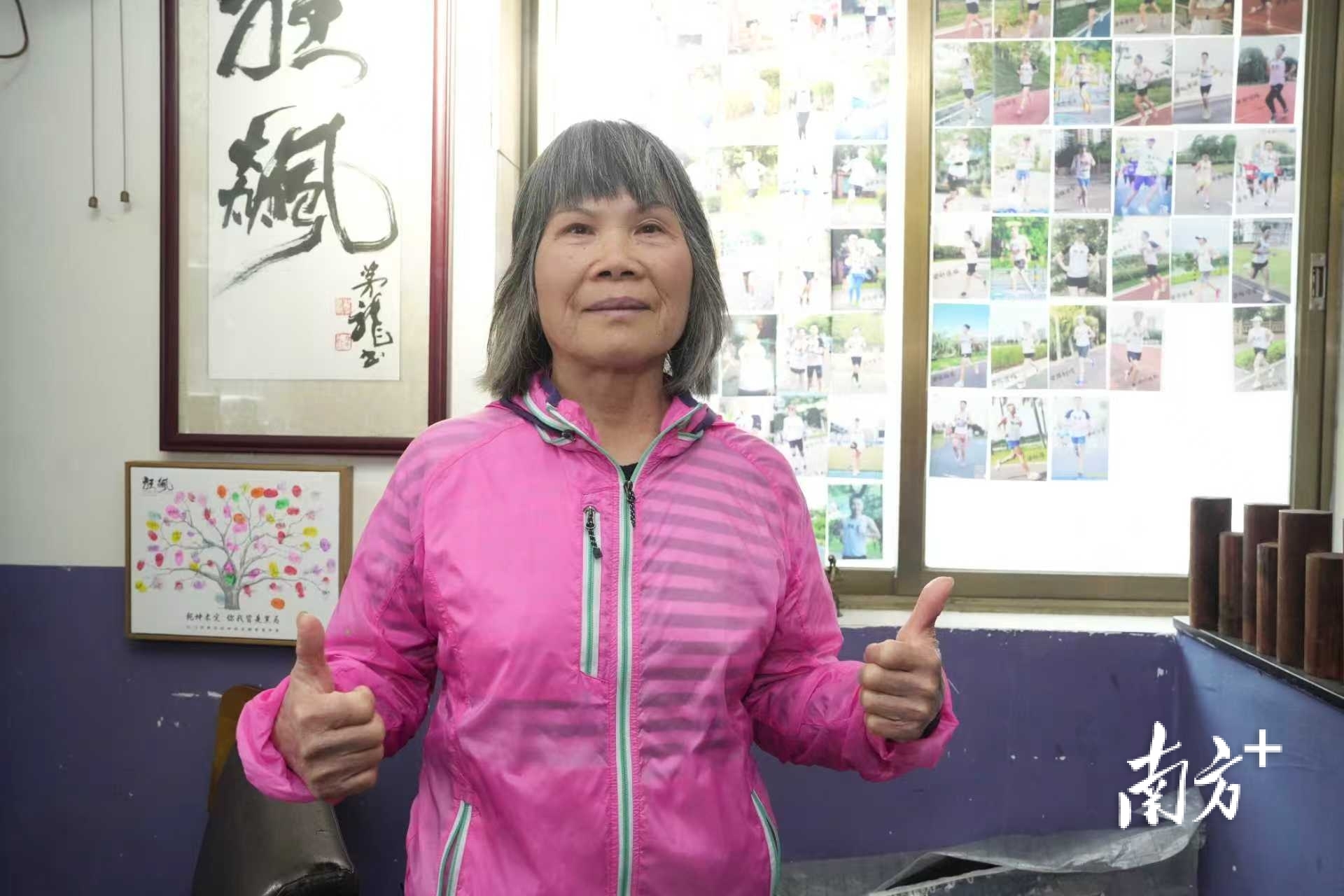 “她每天跑二三十公里,跑完就回家,一个月下来就是六百多公里。”陈健忠表示,跑团里的130多名成员中,赵彩珠是年龄最大的,但也是最自律的人之一。只要天气状况允许,她都会到白水带、圭峰山等地跑步锻炼,让许多年轻人自愧不如。
