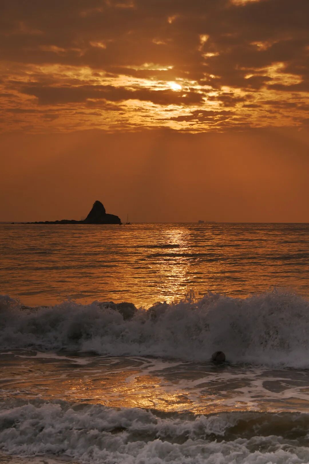 金色光斑在海浪间跳跃