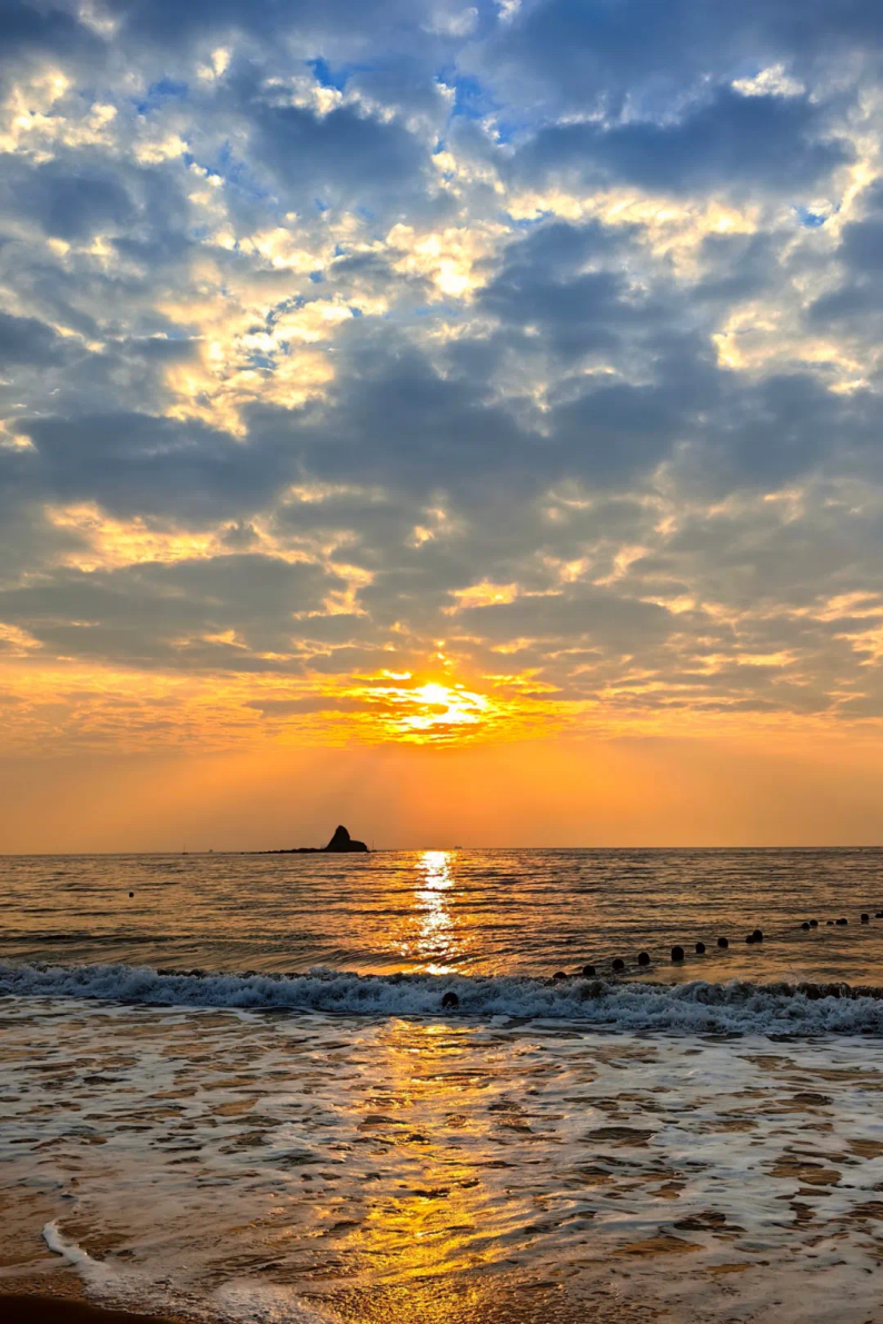 连浪花都带着朝霞的味道