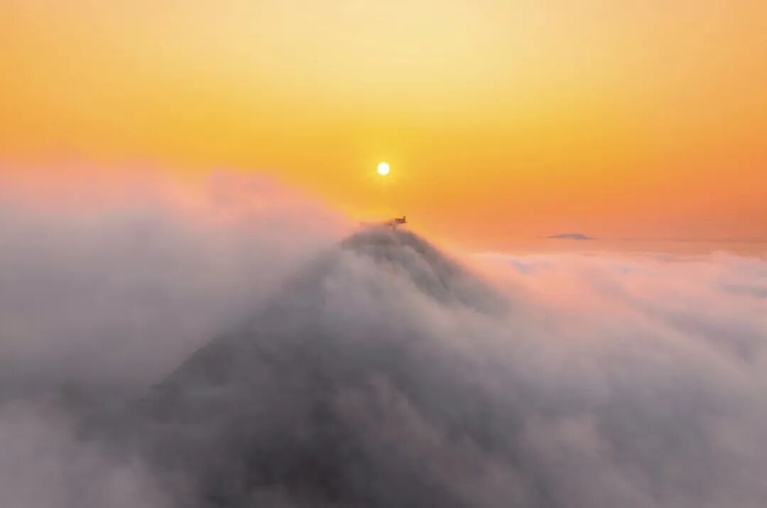 在日出染红云海的瞬间烟消云散