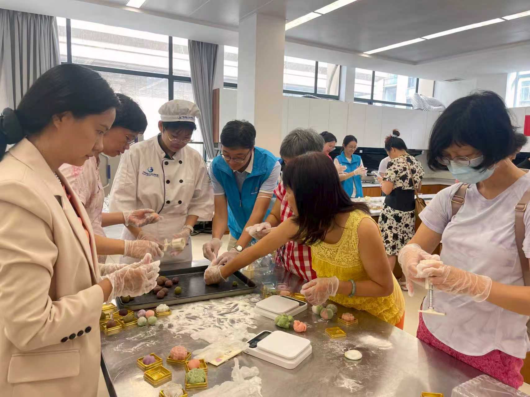 “冰皮月饼是一款‘不用烤’的月饼,揉、捏、包、压简单四步就能制作……”9月28日下午,广州市轻工技师学院东校区香气四溢、笑语盈盈,由大东街道羊城家政基层服务站、大东街道就业驿站、中山三社区、广州市轻工技师学院联合打造的“月映大东・冰皮手作体验班”在这里火热开课。近40名街坊学员在老师的指导下,动手制作出带有漂亮花纹、可爱形状的冰皮月饼。“自己做的月饼,最好吃!”学员们现场尝鲜,中秋的幸福味在舌尖绽放,一门实用的新技能也顺手装进了“口袋”。