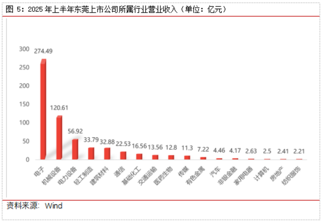 在2025年上半年东莞上市公司的行业分析中,整体呈现出结构分化的格局,电子、机械设备和电力设备行业在营收端占据主导地位。