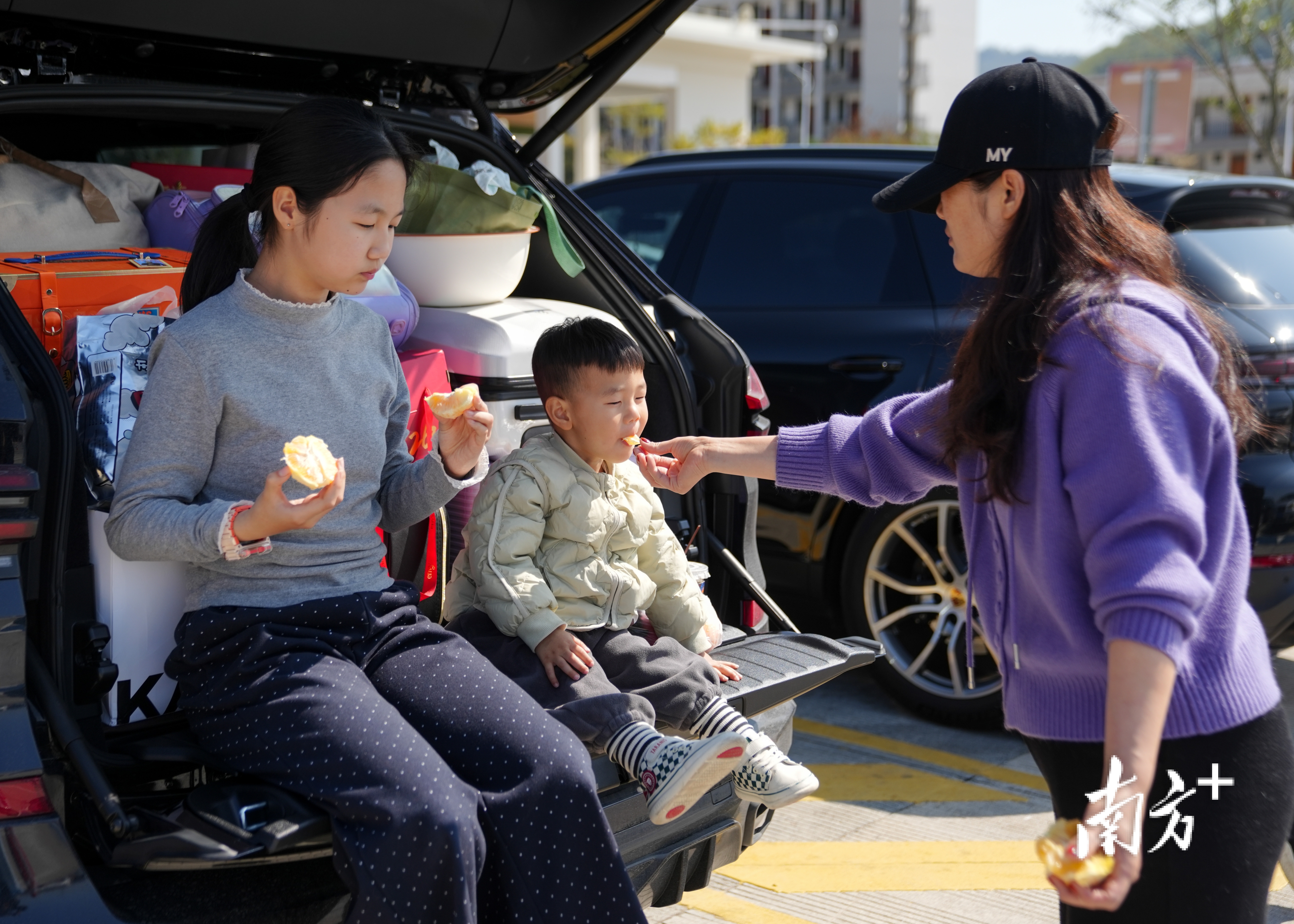 2月2日中午,春运第一天,惠州市龙门服务区(武深高速武汉方向),朱女士一家带满零食,从深圳出发前往安徽老家。正值中午,他们正在停车区吃水果休息。