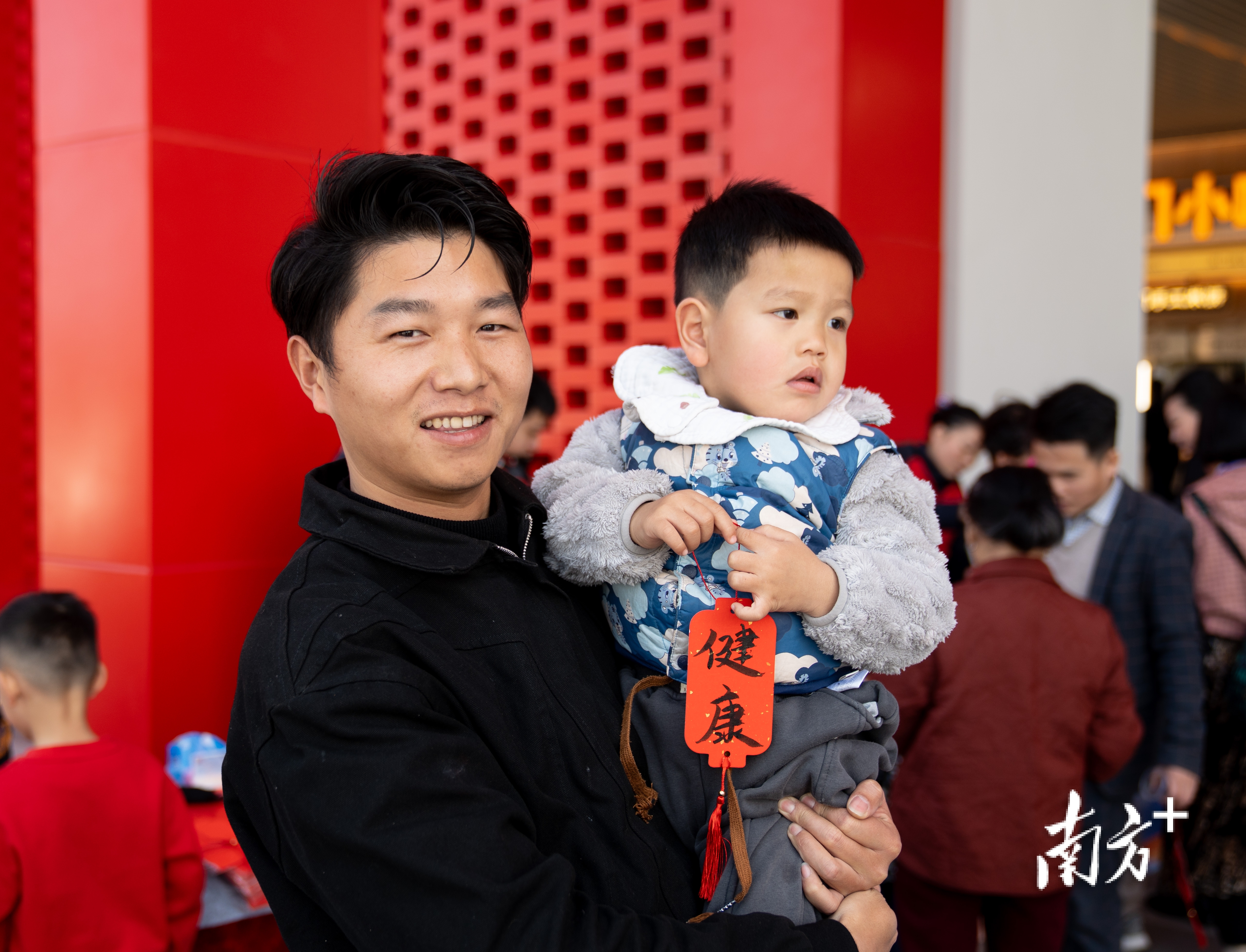 2月2日,春运第一天,惠州市龙门服务区(武深高速武汉方向),现场设有春联摊位,有返乡旅客挑中了“健康”字样的挂件带回家。