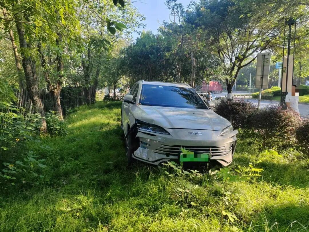 近日,胡某驾车沿江津区祥福大道由九江大道方向往团结湖方向行驶,至双福新区祥福大道路段时,车辆突然偏离车道,撞上路边隔离石墩后冲上绿化带,造成交通事故。