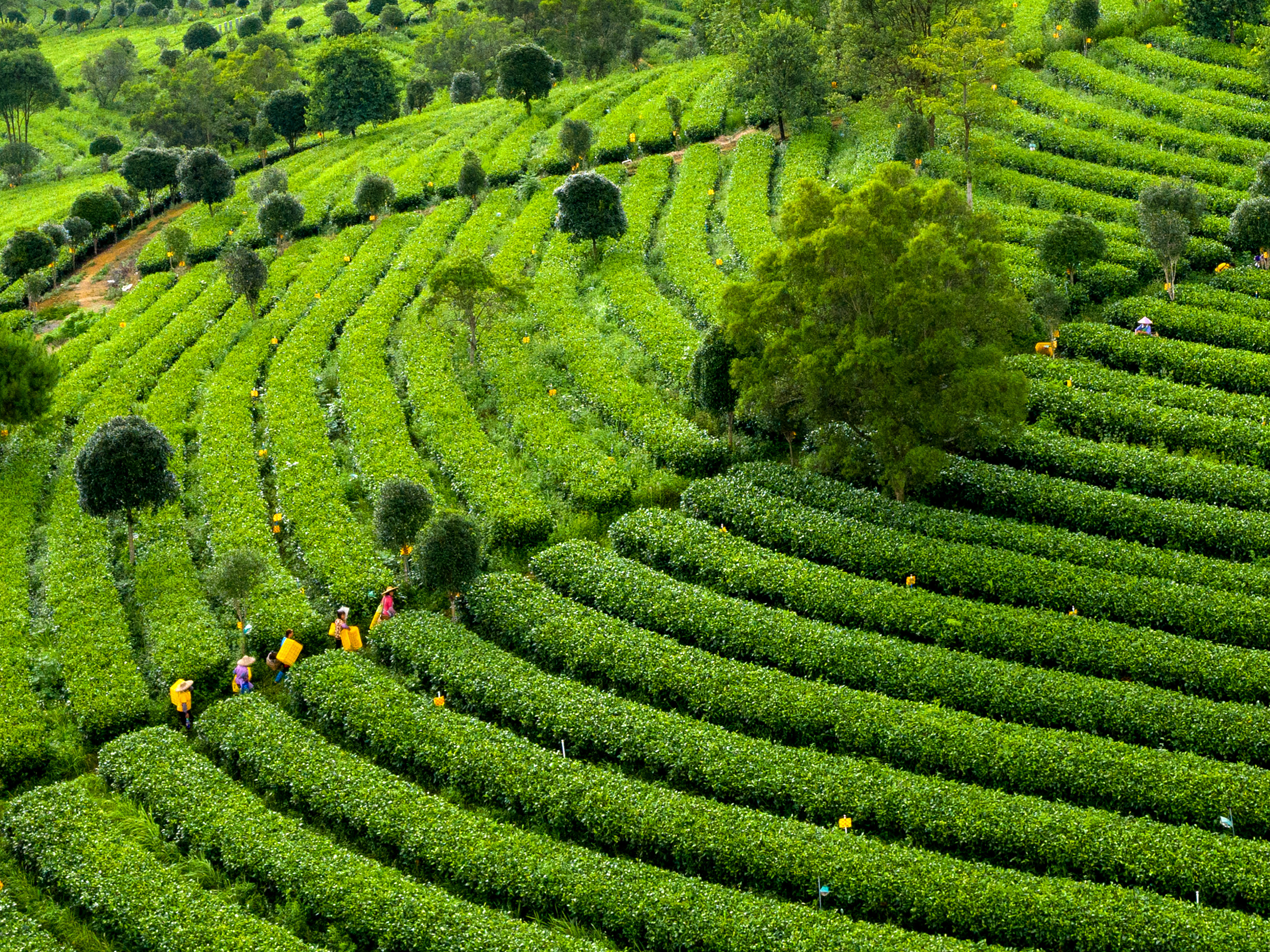 广东清远,茶农正在茶园里采摘英德红茶茶青。李阳桂 摄