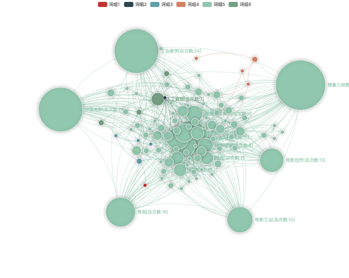 电影想象力消费系列研究的“关键词共现网络”。