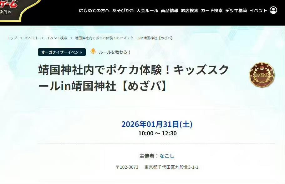 近日,日本一卡牌店计划于1月31日在靖国神社举办“儿童卡牌体验教室”活动,其宣传页面一度出现在宝可梦卡牌官方预约系统中,标题明确标注“靖国神社”字样,消息传出迅速引发网友声讨。