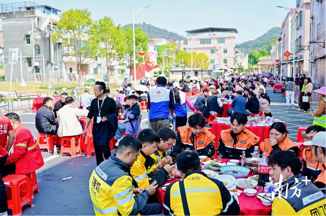 腊月廿四,南方小年。东莞东城横岭村的篮球场边,50桌团年饭热气腾腾,100只烧鹅油光锃亮。这场名为“东城请吃团年饭——横岭鹅宴”的活动,请来的不是贵宾,而是快递小哥、环卫工人、留莞务工者、社区长者——那些平日里默默守护这座城市、却在团圆时节常常被忽略的“家人们”。