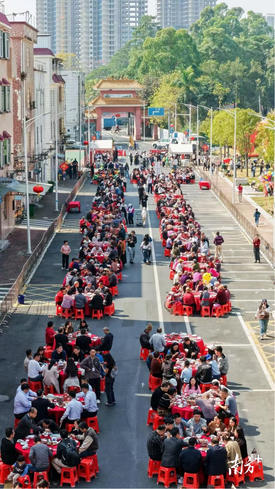 选择在横岭村摆这顿团年饭,是有深意的。曾经的横岭村,与东莞许多城中村一样,面临着环境杂乱、设施陈旧的问题。如今,通过人居环境整治、基础设施升级,这里已成为黄旗南片区的亮丽风景:草坪公园绿意盎然,老房改造的打卡点游人如织。