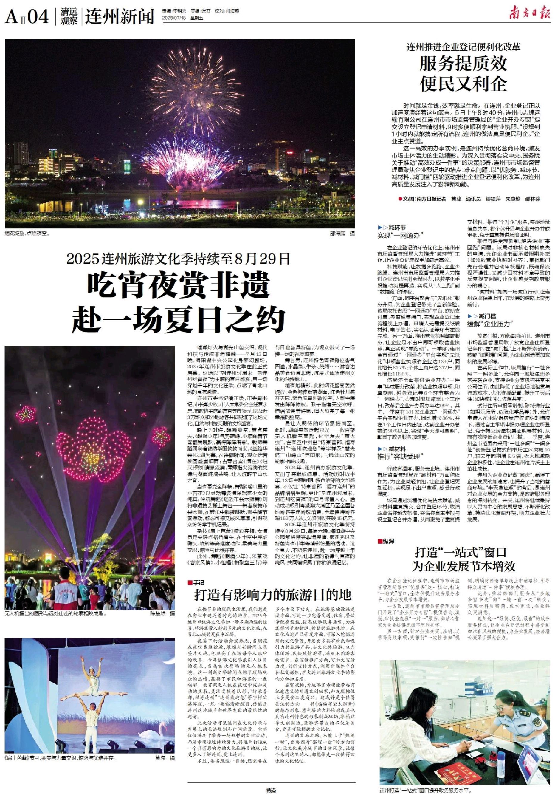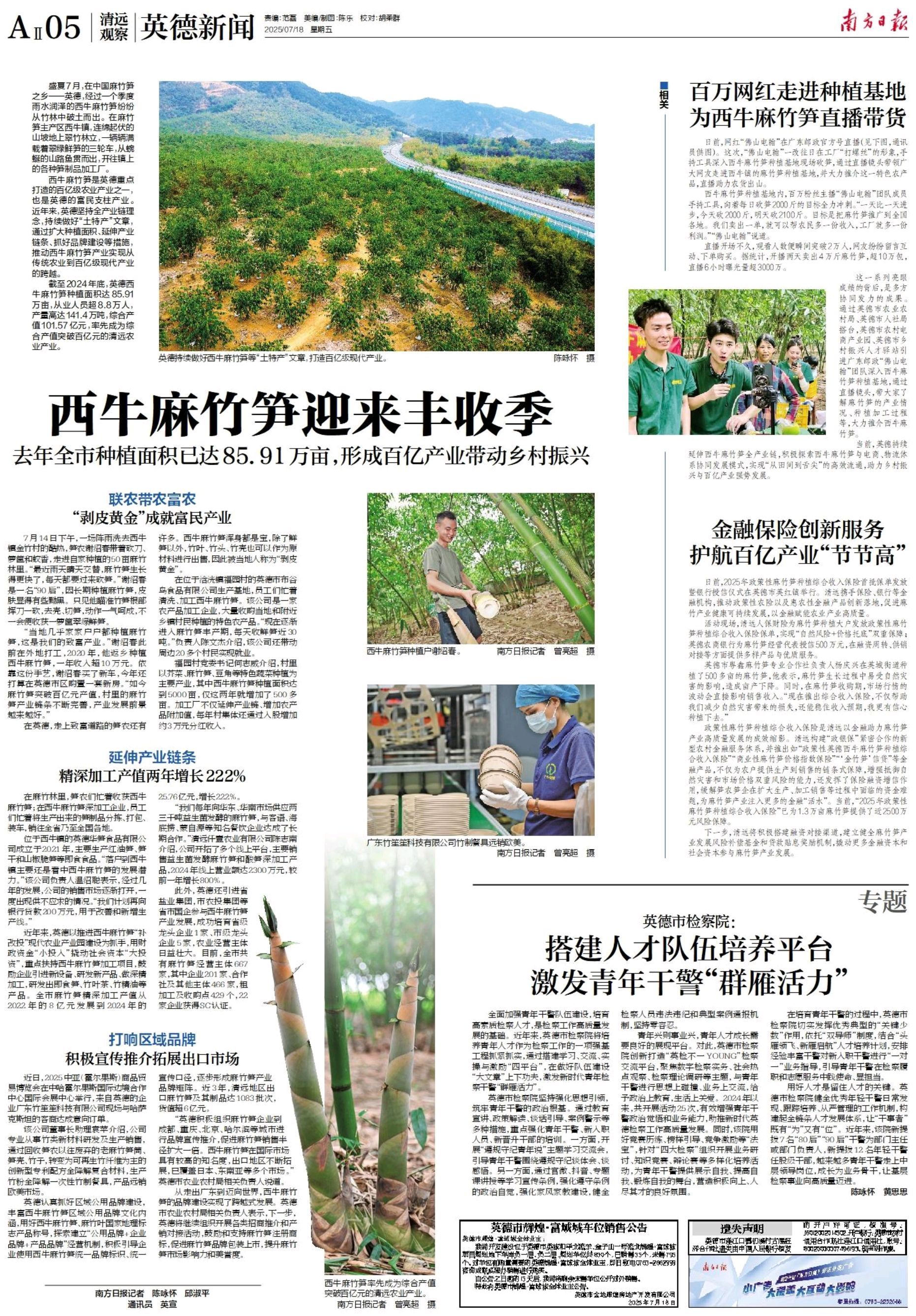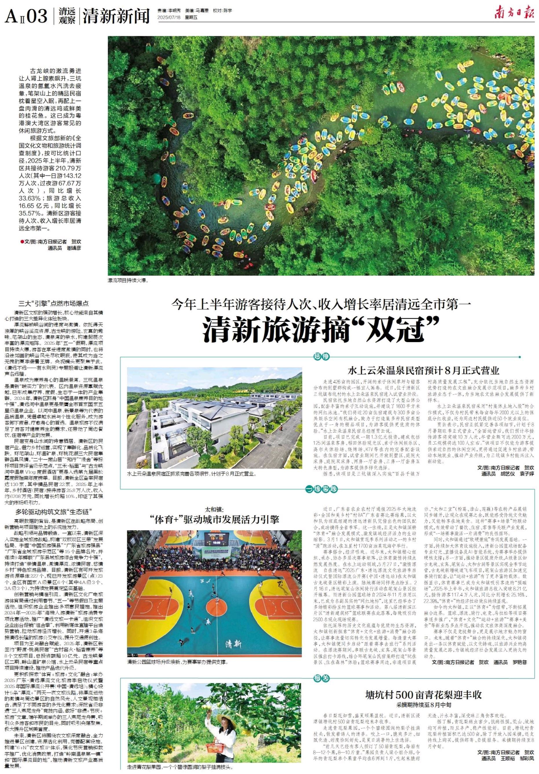 (点击标题即可查看原文)第一版以点带面 文旅生金做大文旅招商海外友人共襄文旅盛宴第二版“清城优选”让小作物带动大发展第三版清新旅游摘“双冠”水上云朵温泉民宿预计8月正式营业“体育+”驱动城市发展活力引擎塘坑村500亩青花梨迎丰收第四版吃宵夜赏非遗赴一场夏日之约服务提质效 便民又利企第五版西牛麻竹笋迎来丰收季搭建人才队伍培养平台 激发青年干警“群雁活力”第六版“和事佬”一盏茶调解千家事龙山镇土特产 撬动发展活力第七版田园风光秀美 群众幸福可及鲜果飘香 带富一方瑶族风情 非遗魅力第八版建立“一站式”肺栓塞急救体系趁热打“贴” 冬病夏治正当时助力糖尿病患者 开启健康新生活点击图片,一键报料↓↓↓ 免责声明:本文由南方+客户端“南方号”入驻单位发布,不代表“南方+”的观点和立场。 编辑 叶镇祖 订阅后可查看全文(剩余80%)