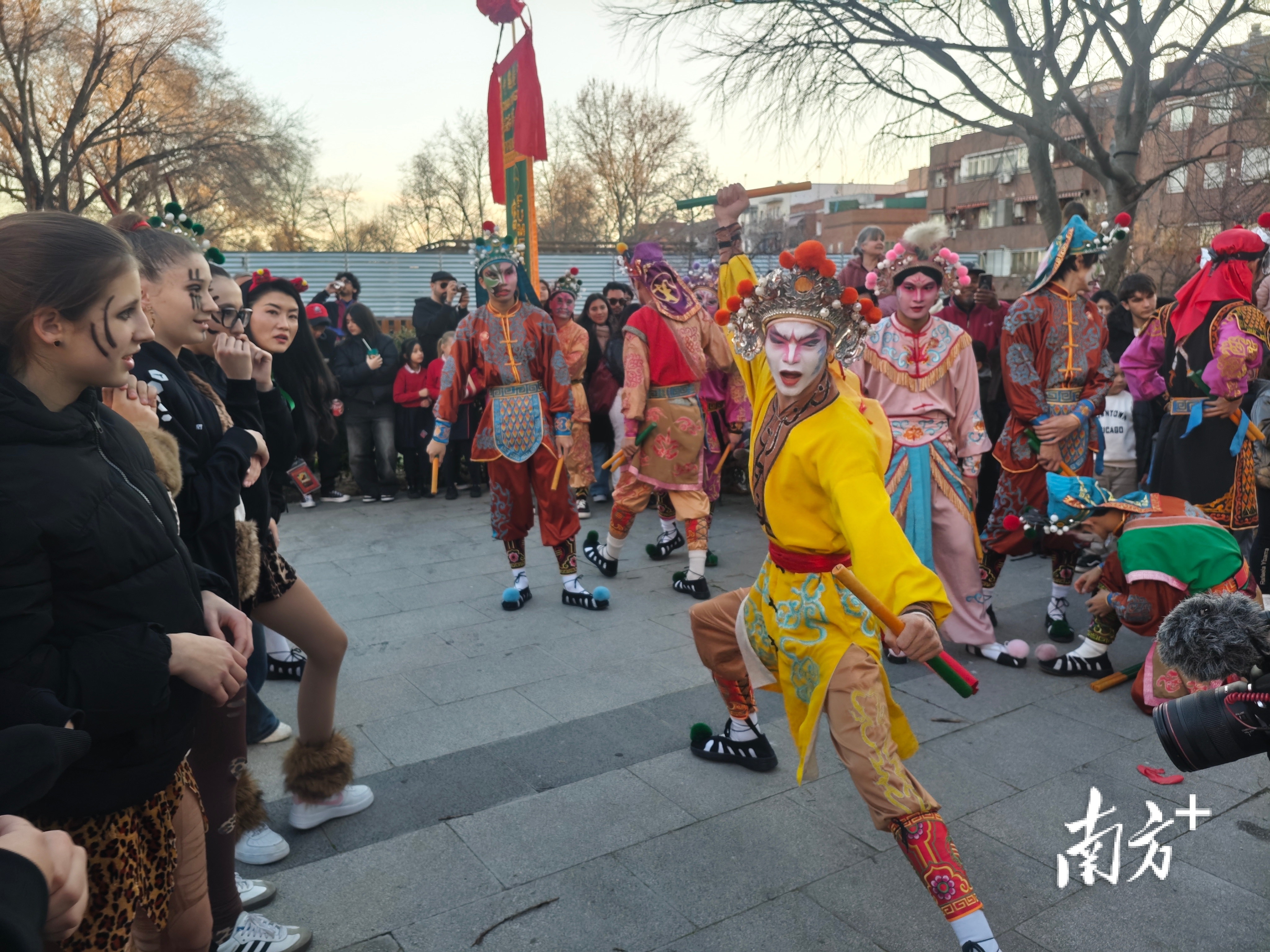 随后,英歌队还来到乌塞拉市政府广场、乌塞拉大公园(普拉多隆戈公园)开展互动演出,与当地艺术团体联袂呈现交流式表演,让马德里市民与华侨华人近距离感受英歌舞的魅力。