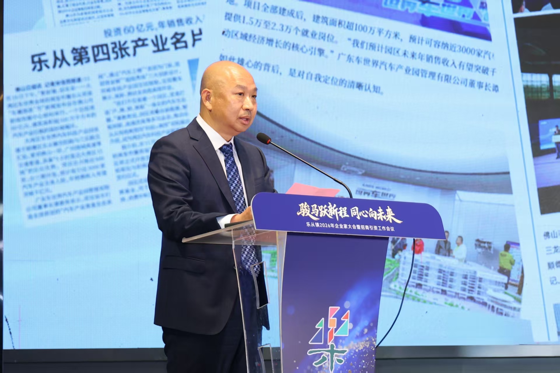 广东车世界汽车产业园管理有限公司董事长谭教育讲述的,是“破局向新”的闯劲——400亩土地、100万平方米建面,2025年拿地、2025年开工、2025年预售,这背后是乐从党委、政府一次次上门问需、现场办公的成果。从传统汽车商贸到“汽车产业文化生态圈”,车世界正在成为乐从第四张世界级产业名片。