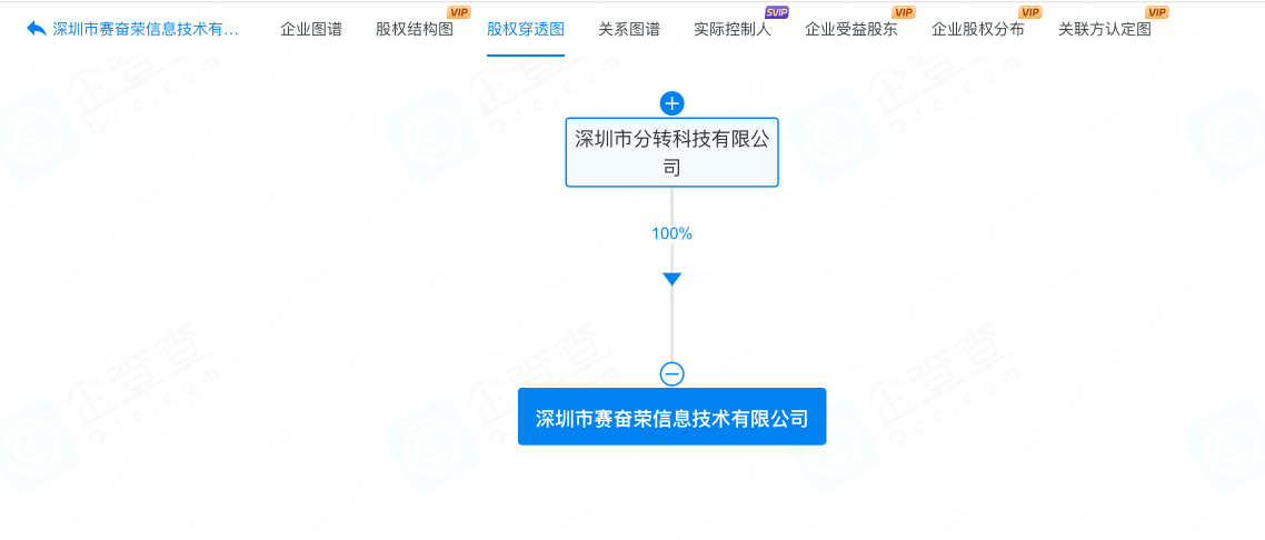 深圳市赛奋荣信息技术有限公司由深圳市分转科技有限公司100%持有。