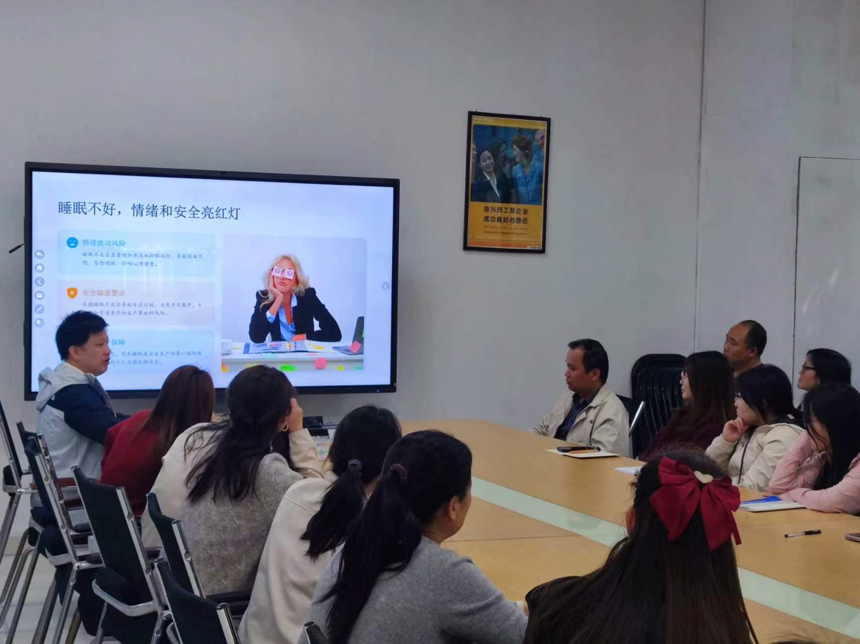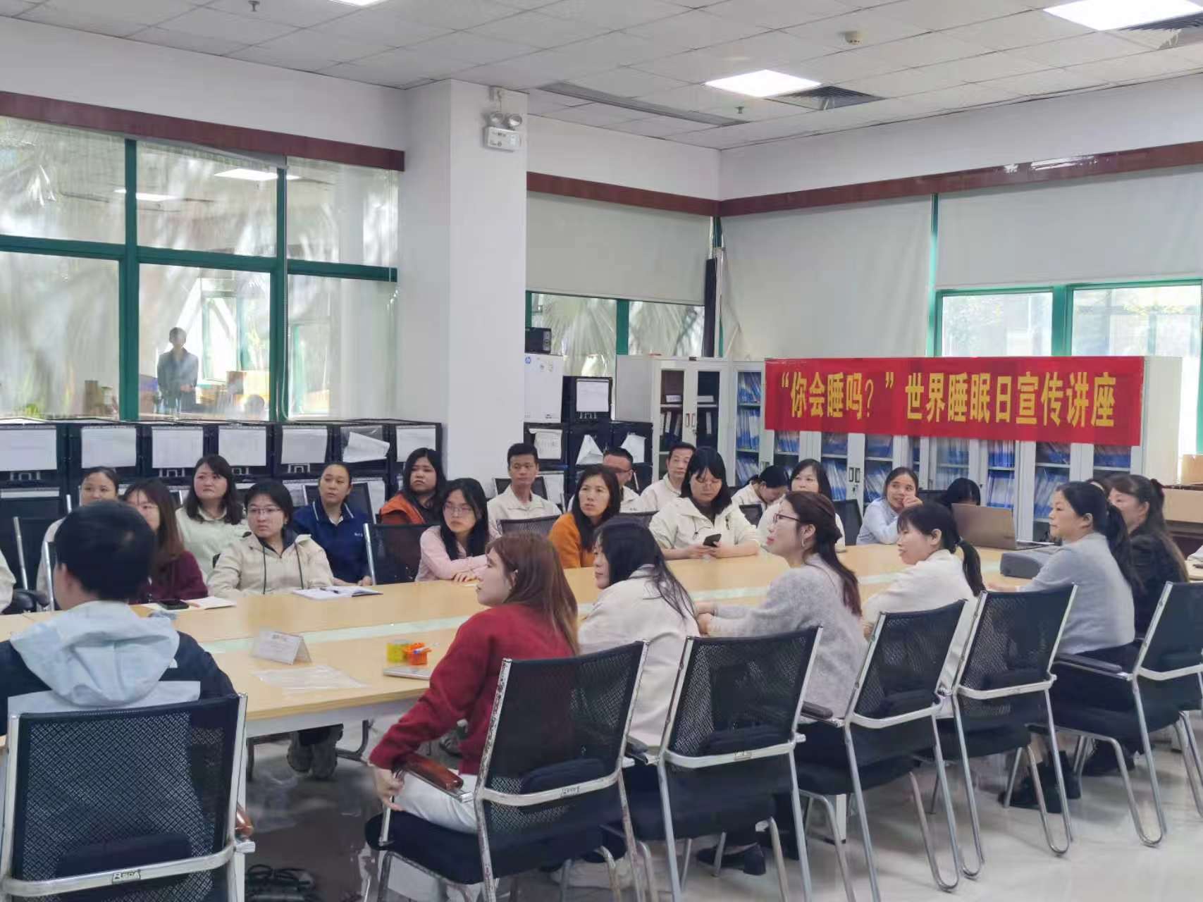在世界睡眠日来临之际,为守护工厂员工身心健康,福海街道塘尾社区工作站携手塘尾社康、德仕科技(深圳)有限公司开展世界睡眠日宣传讲座,30名工厂员工参与活动。