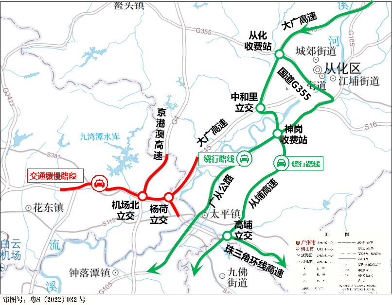 同时,受返程车流集中影响,京港澳高速瓦窑岗服务区、乐广高速花城服务区、沈海高速(北二环)火村服务区等高速服务区服务饱和,容易引起车辆排队进入服务区情况,可能出现车流倒灌影响主线通行。