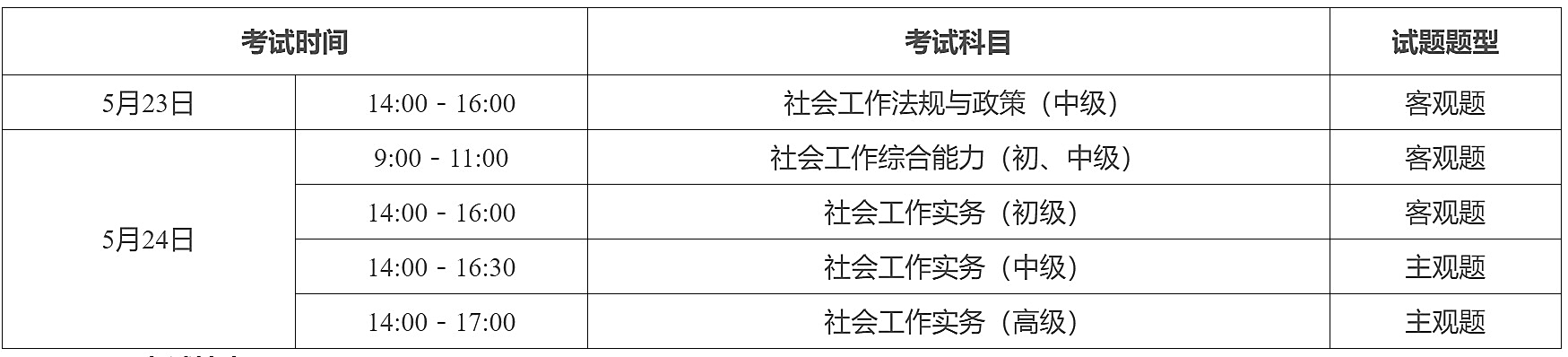 按照《关于2026年度专业技术人员职业资格考试工作计划及有关事项的通知》有关安排,2026年度社会工作者职业资格考试将于5月23日、24日举行。