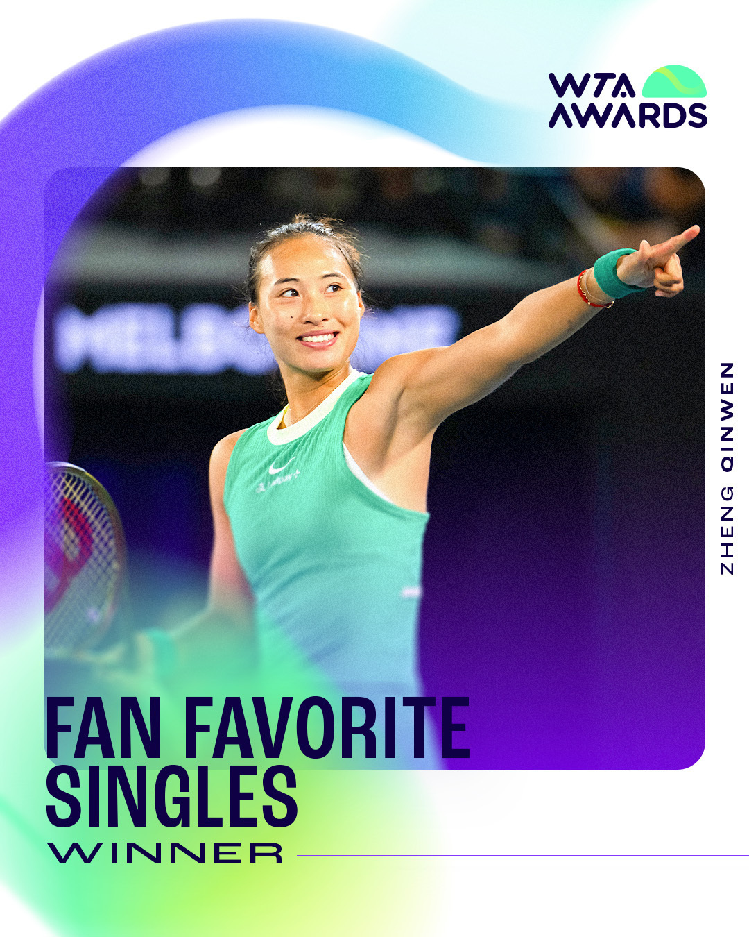 12月19日,国际女子网球选手协会(WTA)官方宣布,中国选手郑钦文当选为2024赛季最受球迷欢迎单打球员。