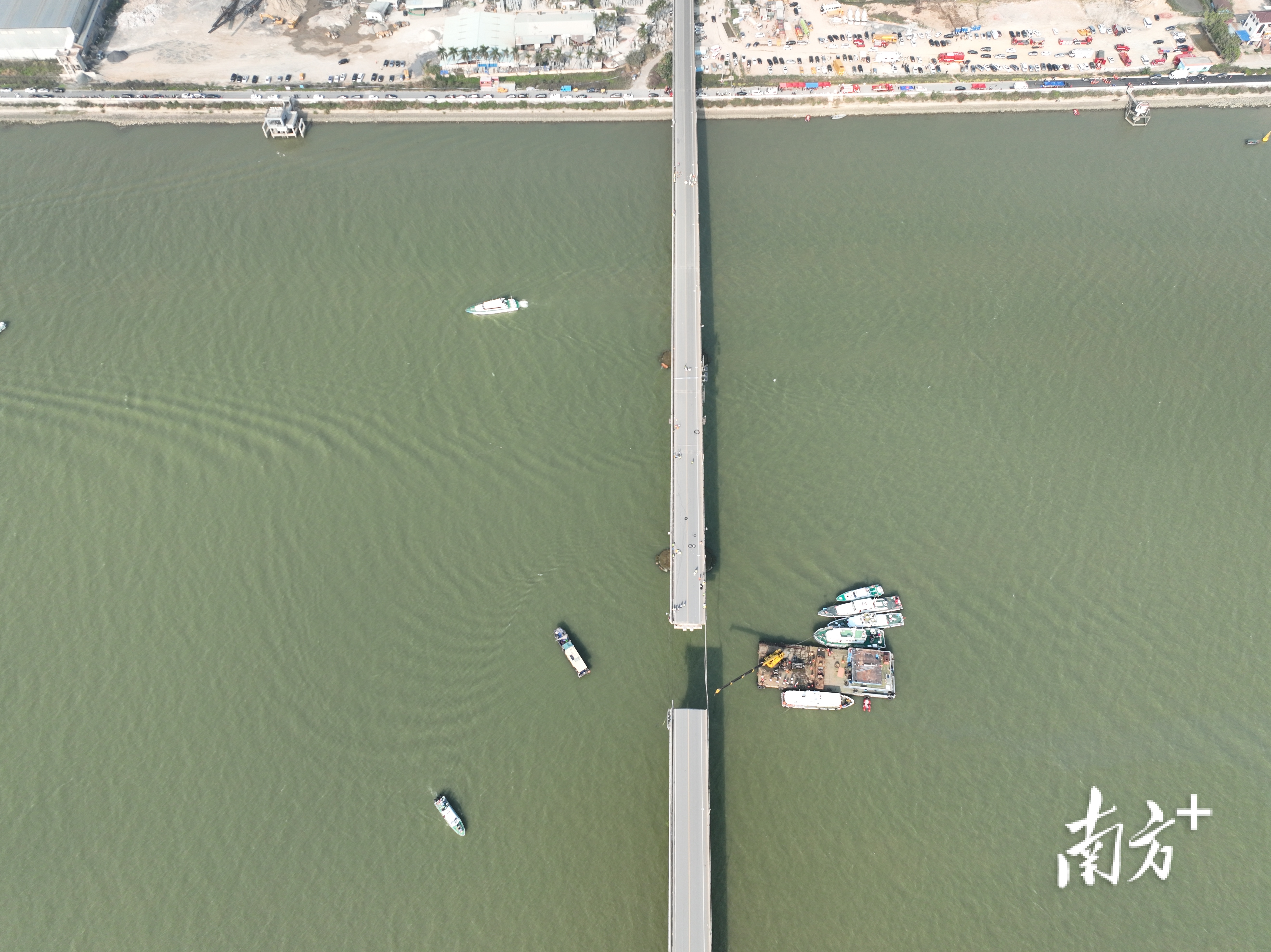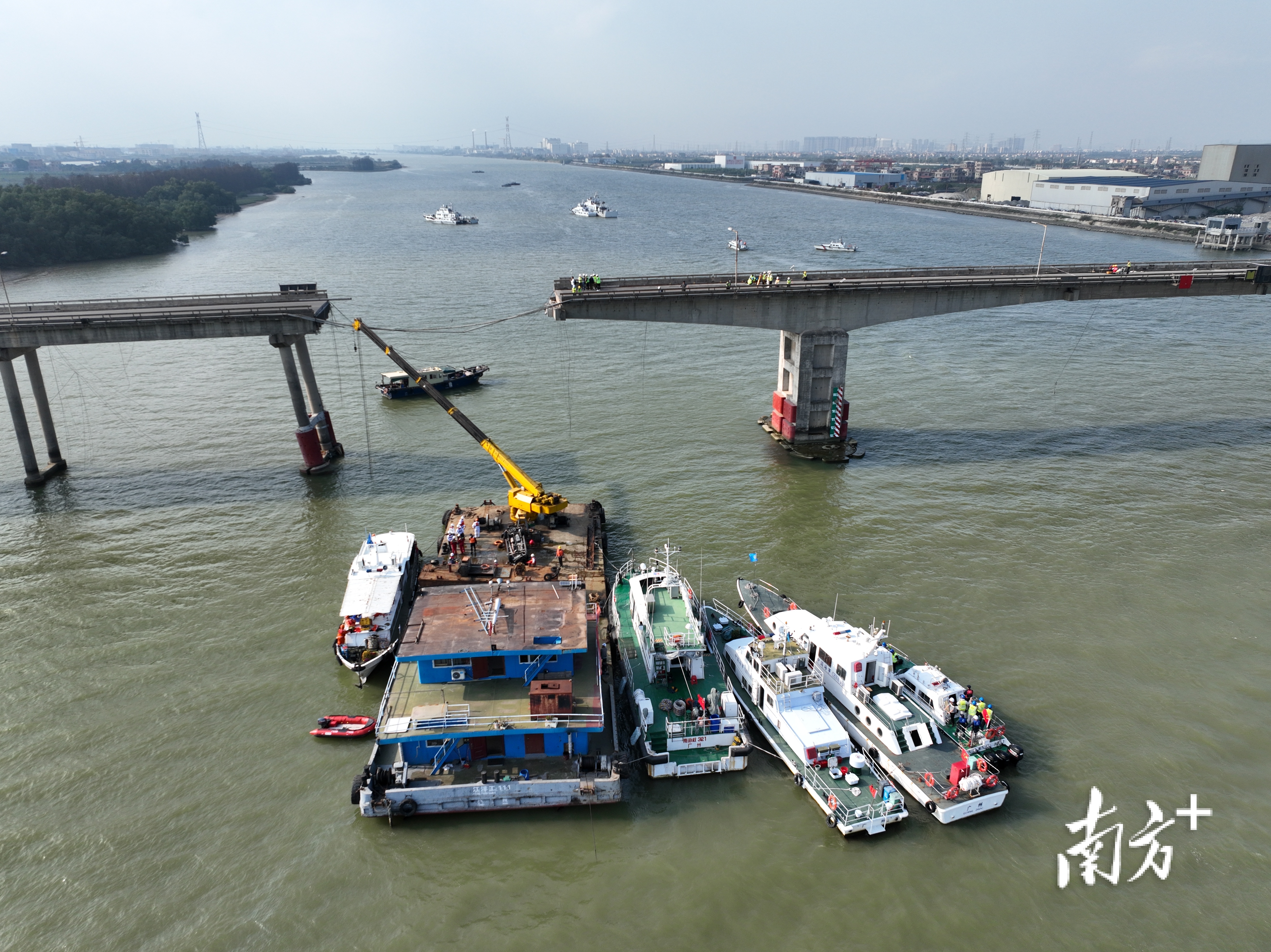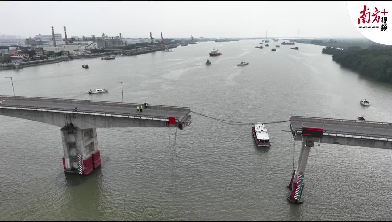 广州沥心沙大桥断裂,当地建设临时渡口保障居民进出