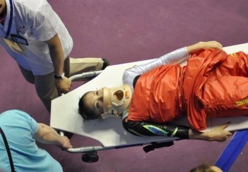 2012年5月11日,全国体操锦标赛暨奥运会选拔赛女子平衡木决赛中,吴柳芳下法出现失误,“头颈直接跌落在垫子上,发出一声巨响”,后被担架抬出场外。经查,她被诊断为外伤性第六七节颈椎轻度突出。在前一年,吴柳芳就曾掉下平衡木,造成脚部撕裂。