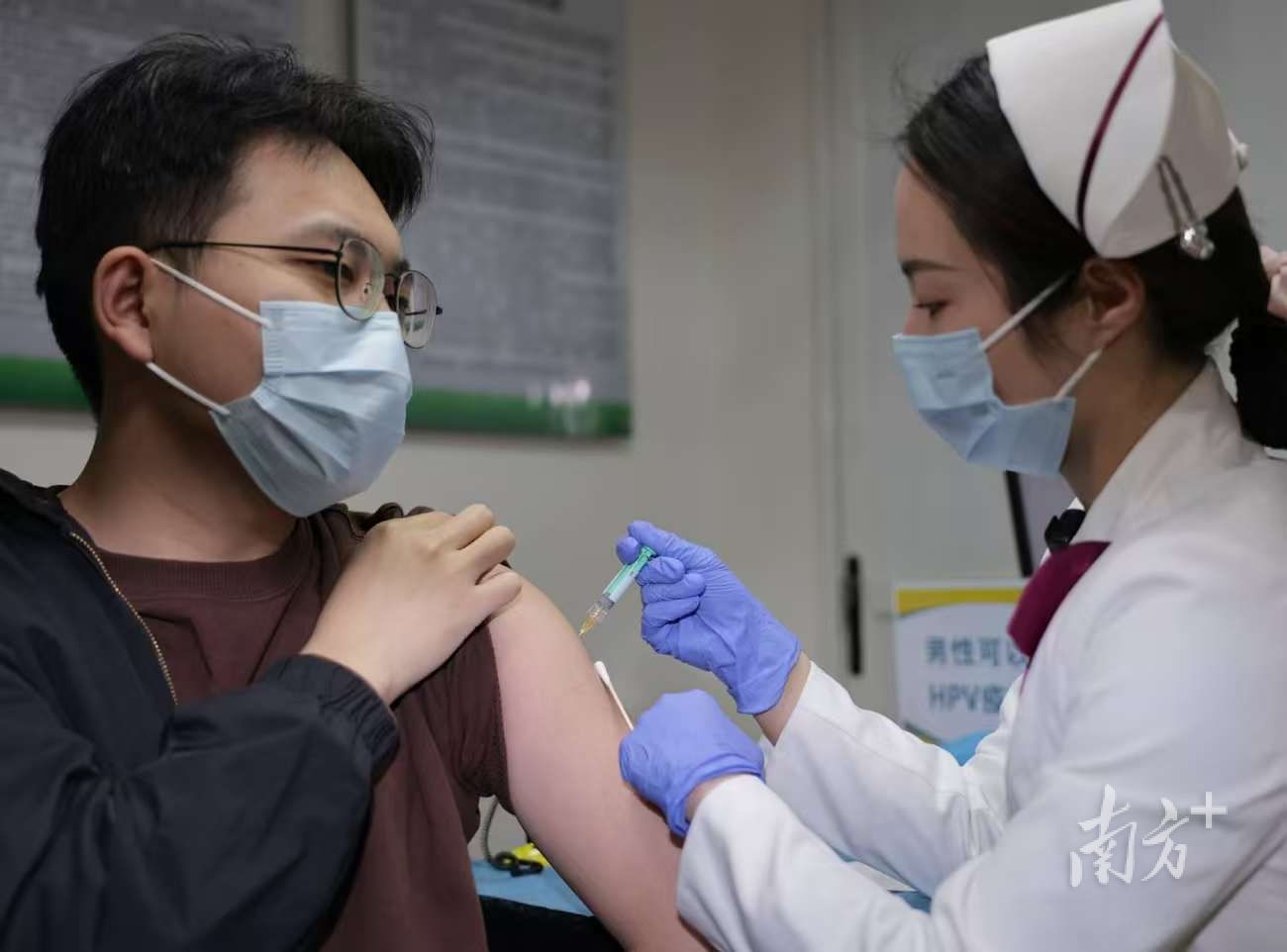 1月21日下午,在中山大学肿瘤防治中心(下称“中肿”),22岁的小伙蓝卓辉接种了四价人乳头瘤病毒(HPV)疫苗第一针。这是该疫苗获批上市后,广州的首位男性接种者。“自己是一名医学生,非常注意健康防护,回去要呼吁更多男性朋友也来打。” 蓝卓辉说。