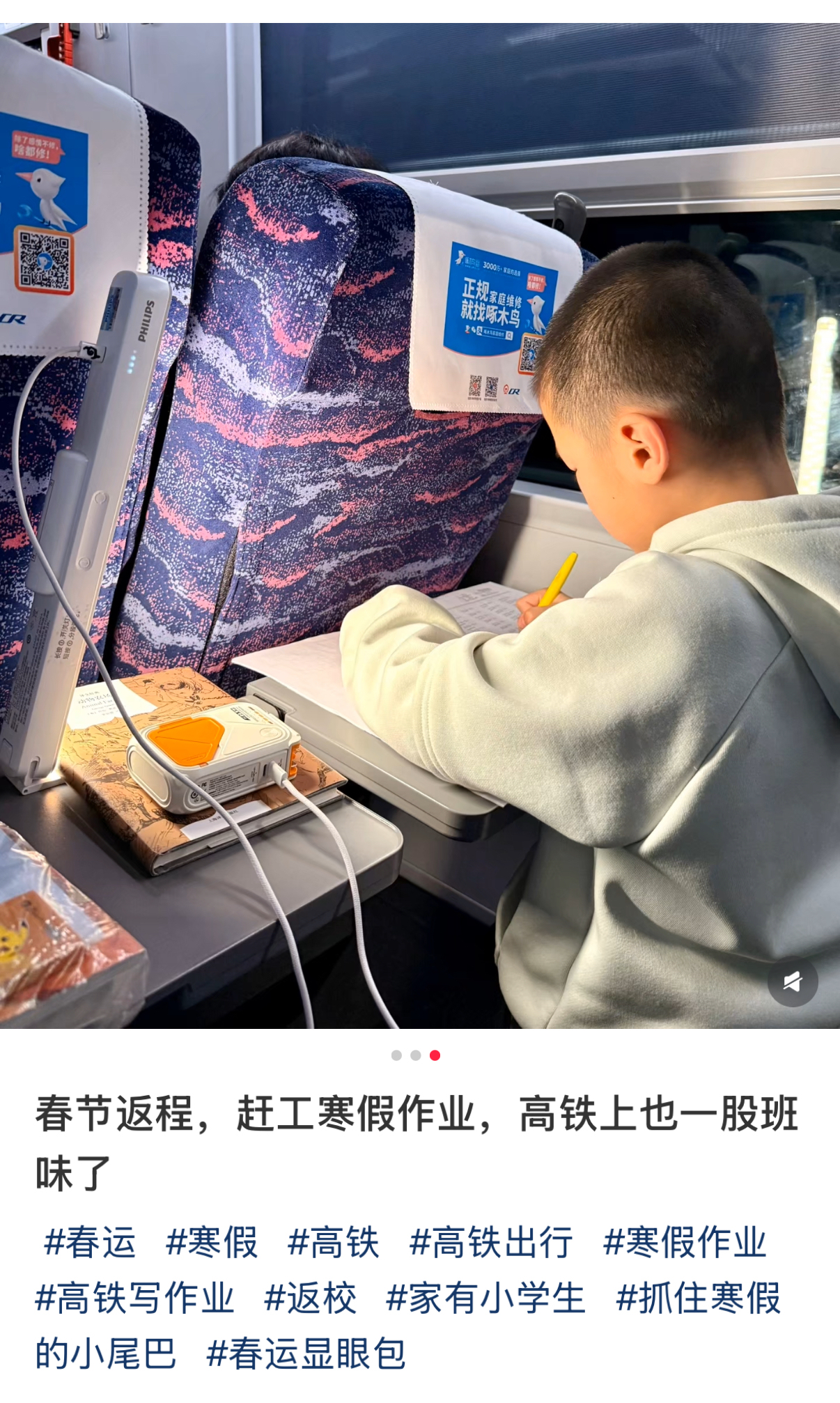 还有用户表示,自己家孩子在春运返程的高铁上就开始赶工寒假作业了。才小小年纪就把学上出了一股班味儿,三个小时时间还引来好多路过的成年人围观。