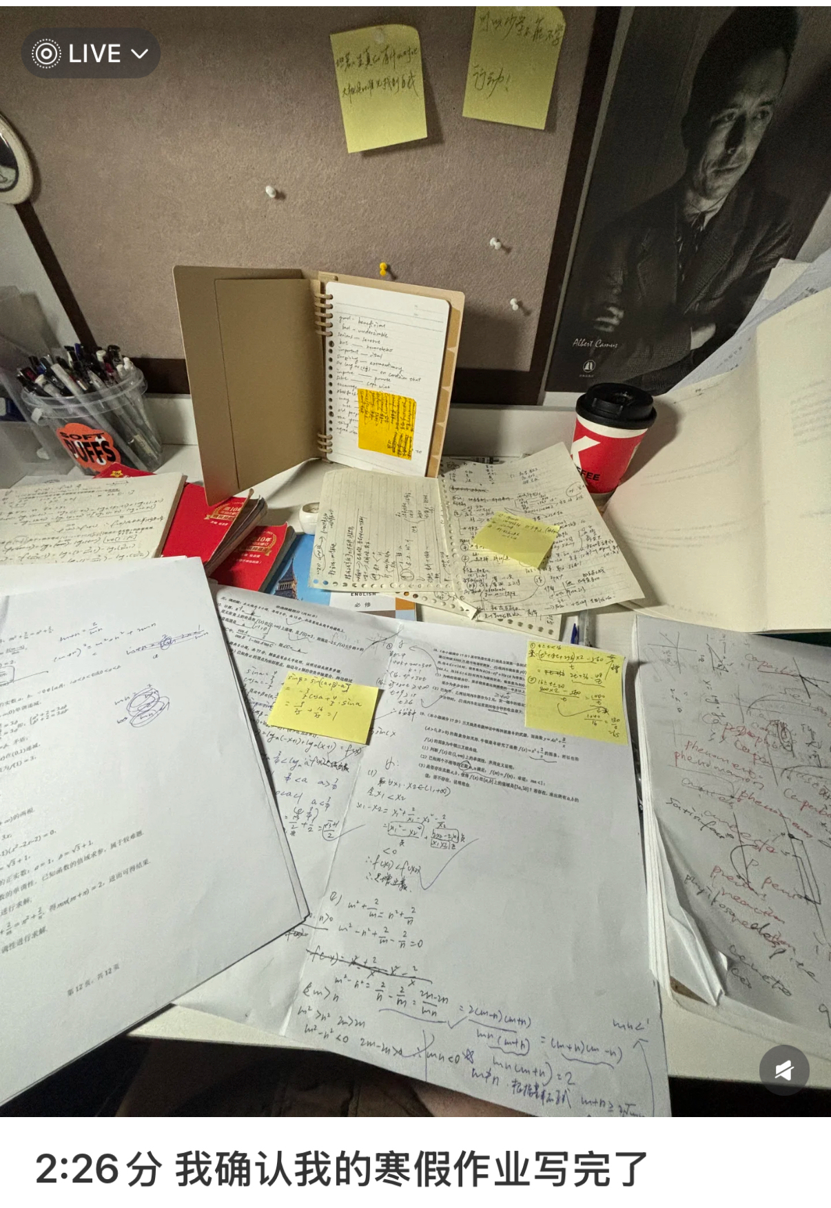 有学生党以Vlog的形式记录下自己星夜兼程狂补作业的实况,真正做到了还自己一个奇迹。
