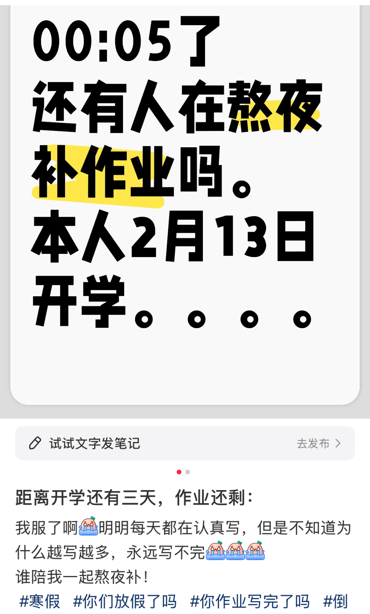 不知道学生党们的寒假作业是已经按计划完成了,还是在“烂尾”的危机中挣扎,力图复刻“一个人、一支笔、一个夜晚、一个奇迹”呢?