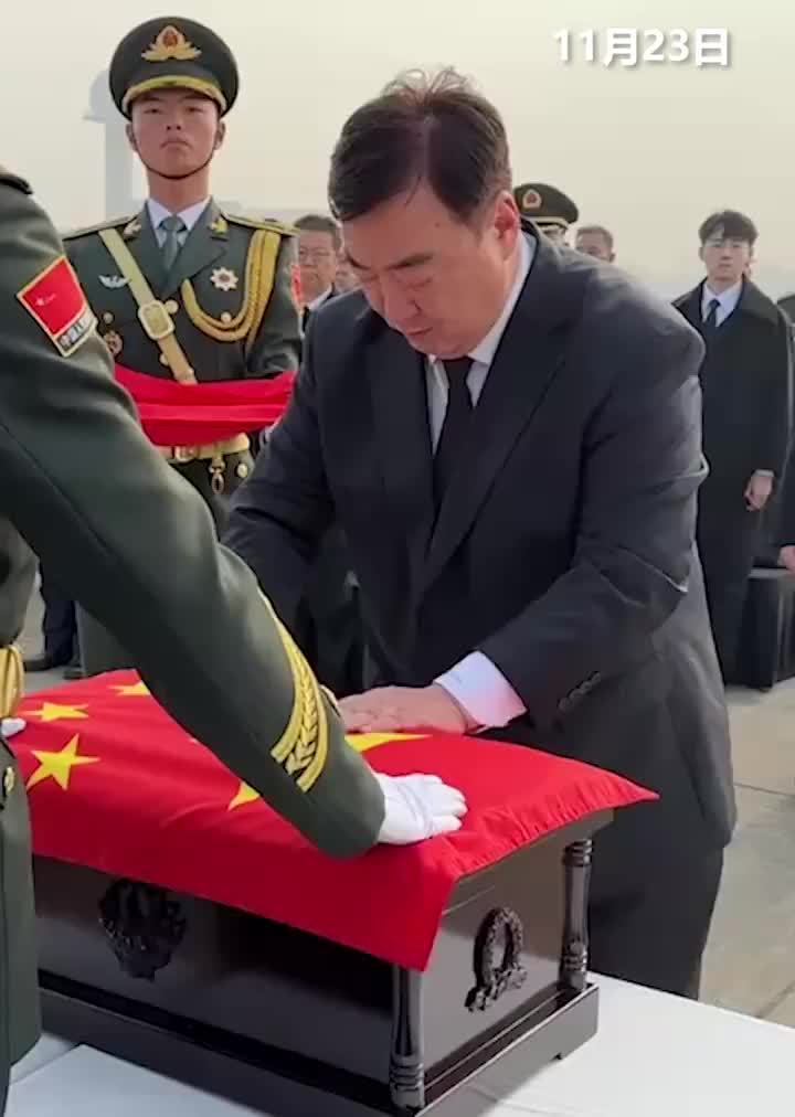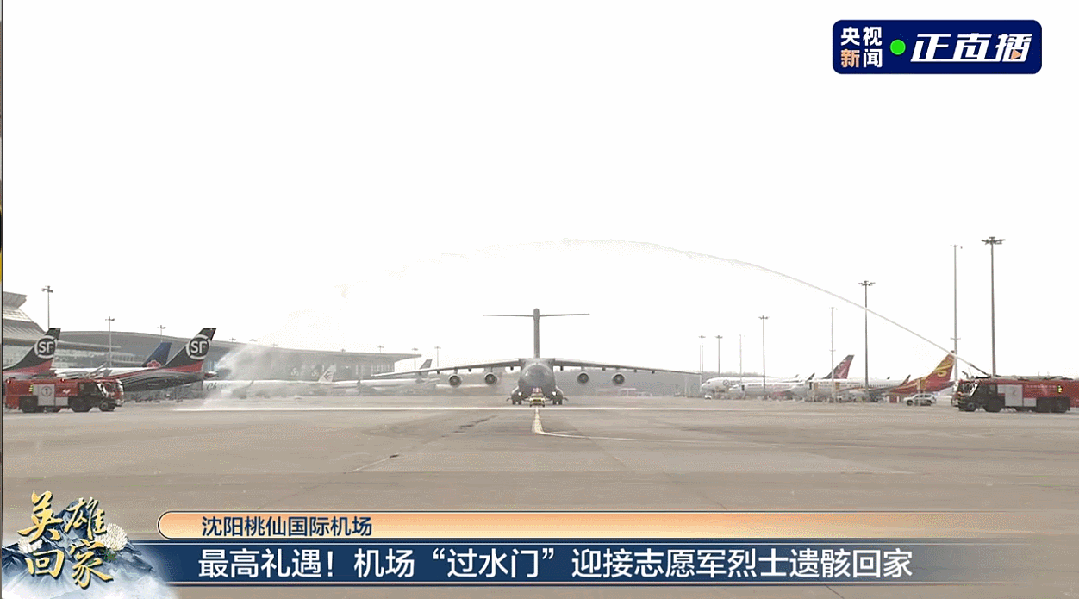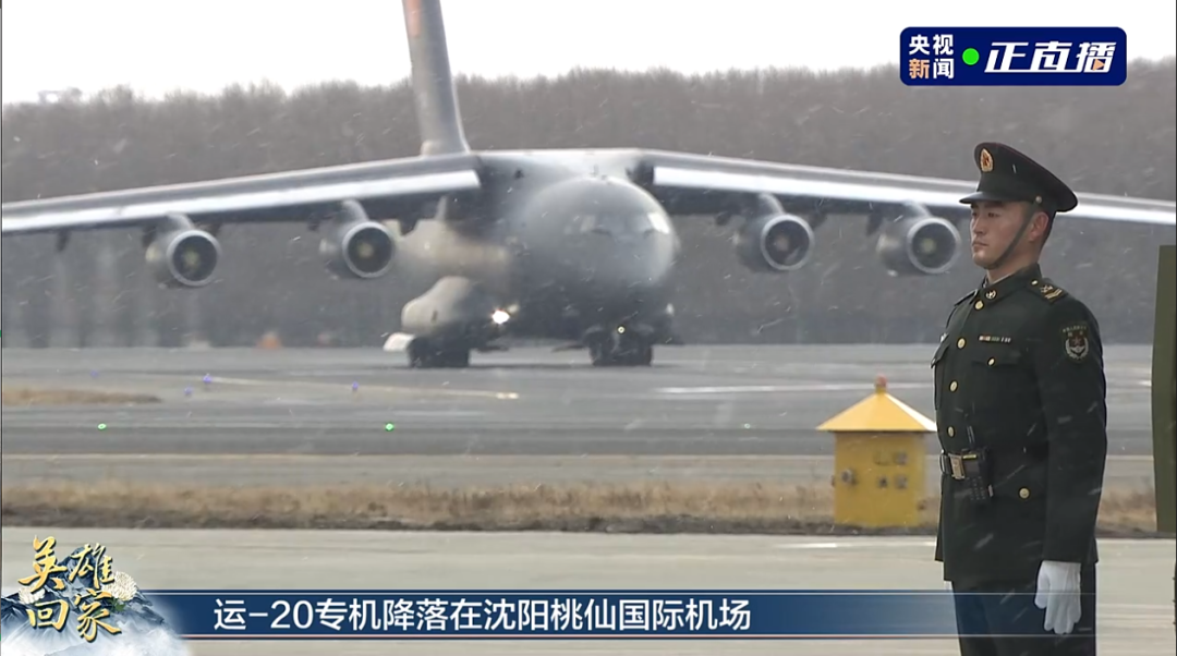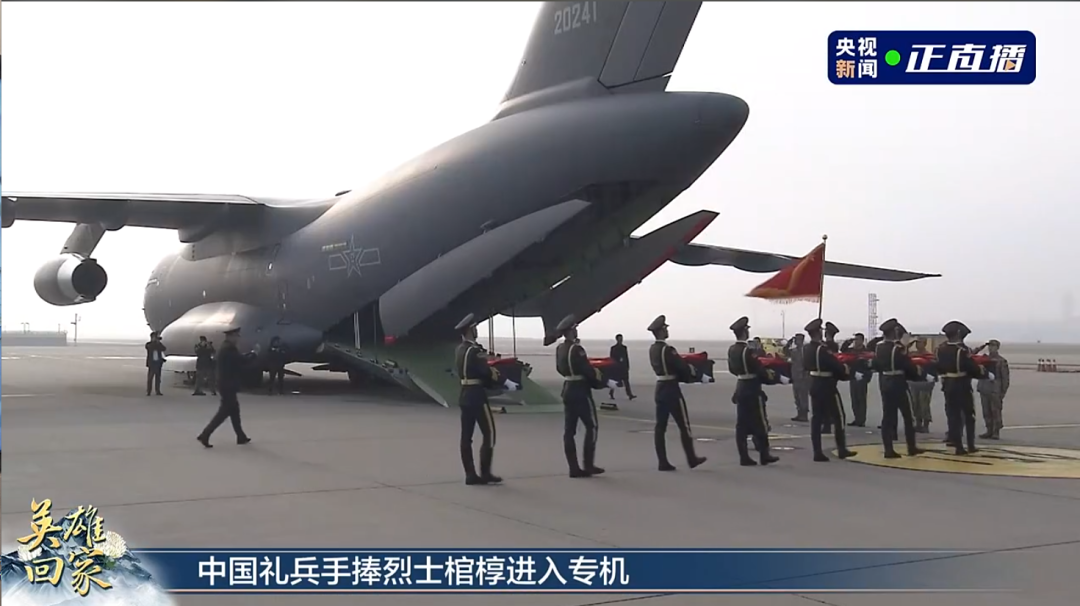 11月23日,在韩国仁川国际机场,中国人民解放军礼兵准备护送烈士棺椁登上解放军空军专机。新华社记者 曹灿 摄