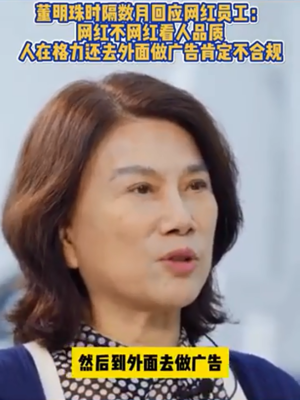 蓝鲸财经消息,11月6日,在接受广东卫视《财经郎眼》采访时,被问及网红员工问题时,董明珠正式做出了回应称:网红不网红看人品质,人在格力去外面做广告是不合规的。