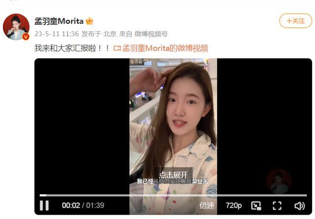 5月11日,孟羽童在个人微博发视频回应从格力离职。