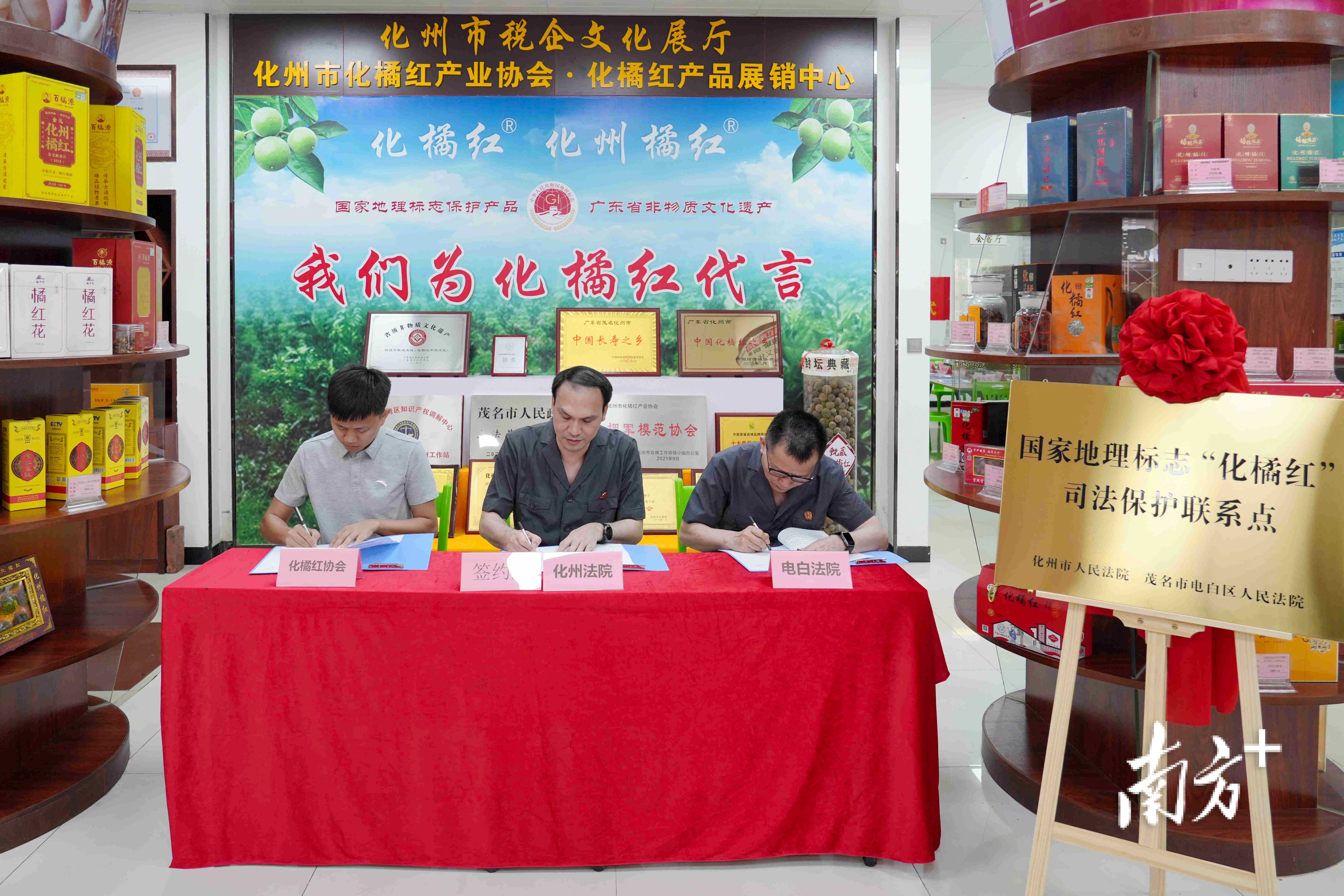 揭牌仪式后,两地法院与行业协会共同签署合作协议,明确将围绕联席会议、诉调对接、巡回审判、联合普法、司法建议等机制持续深化协作,全面提升化橘红地理标志保护的司法服务效能。