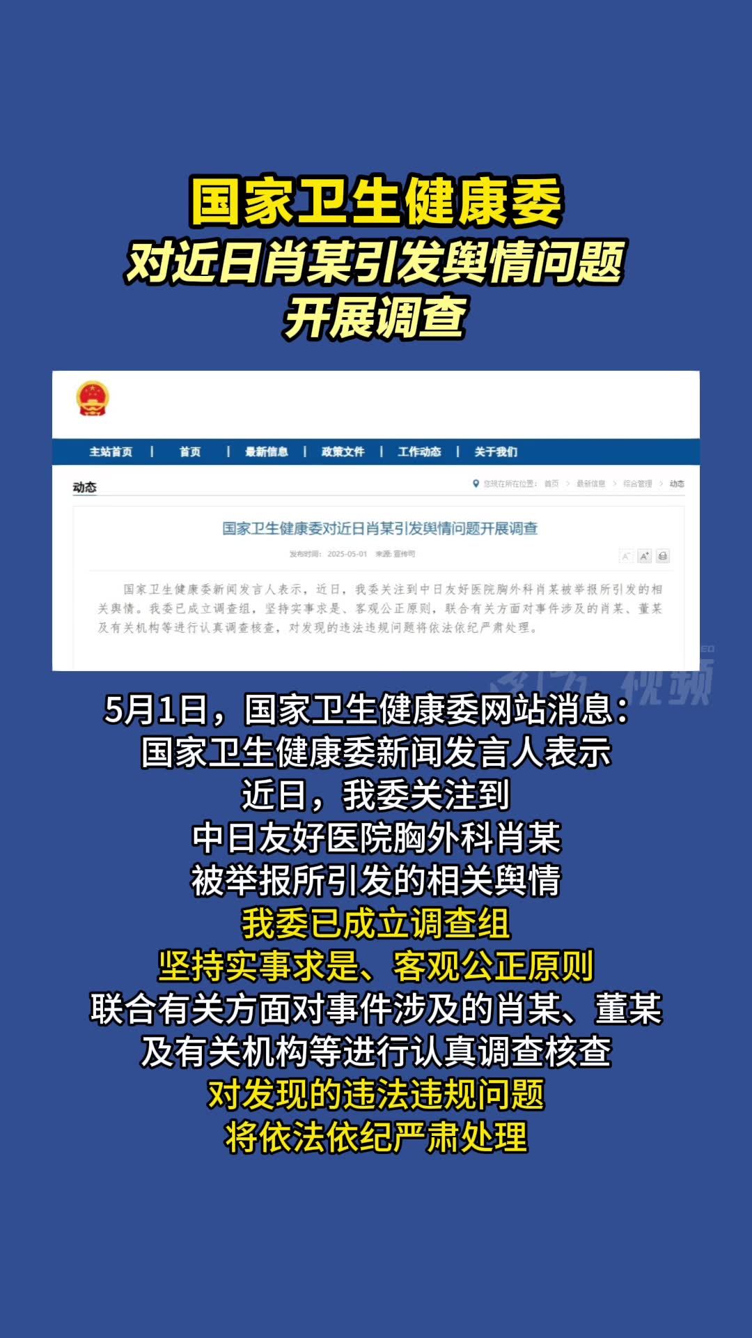国家卫生健康委对近日肖某引发舆情问题开展调查