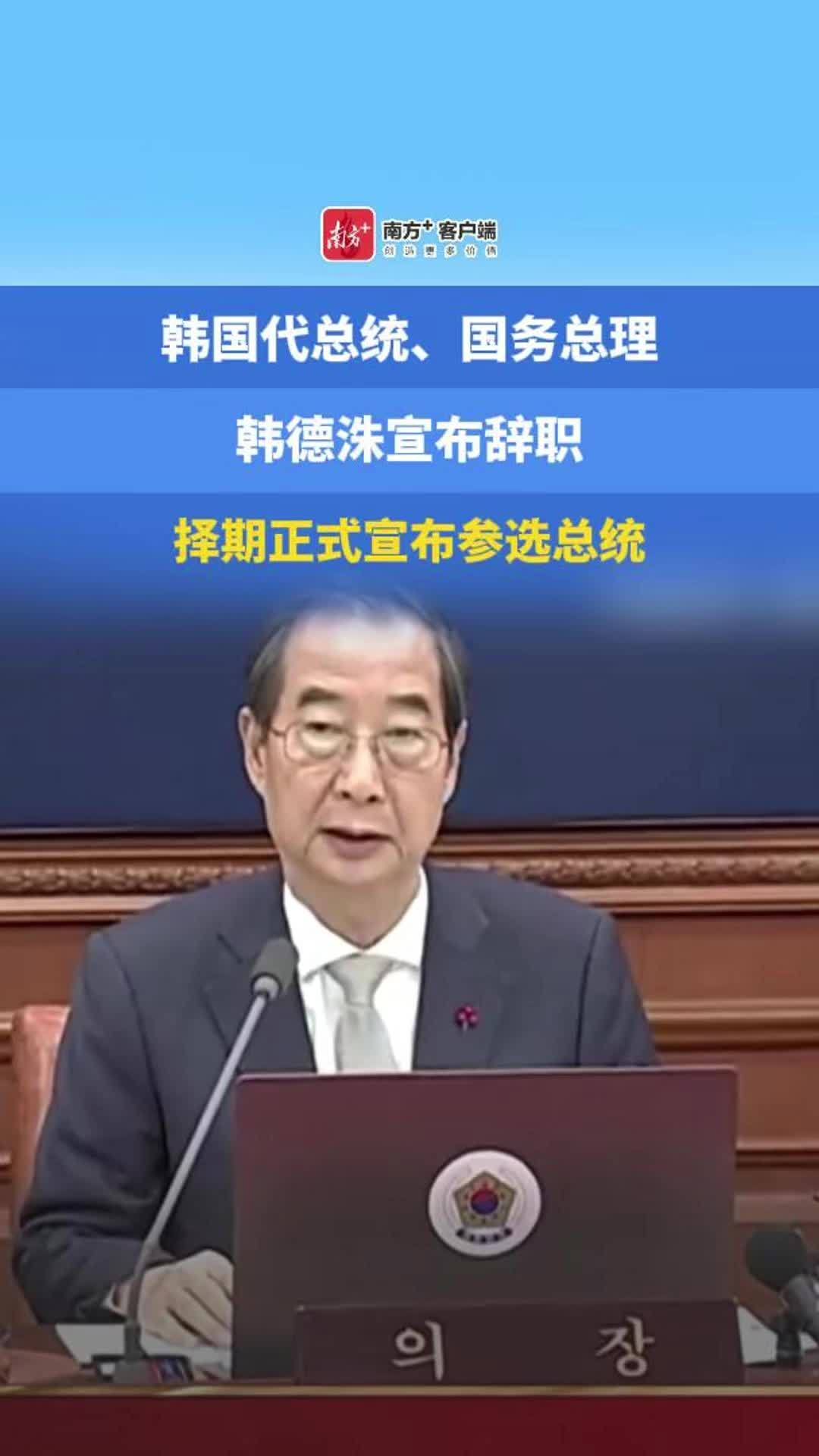 韩国代总统、国务总理韩德洙宣布辞职,择期正式宣布参选总统