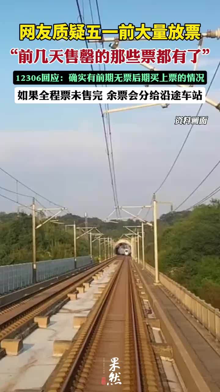 近日,有网友质疑12306五一前大量放出火车票,对此,12306客服表示,确实会有前期无票后期能买上票的情况。客服解释,过路车放票量会少于全程车,售票时通常优先放全程车票。若全程票未售完,发车前会重新调整放票比例并再次放票。乘客可在出发前几天,多关注票务候补情况。详情>>