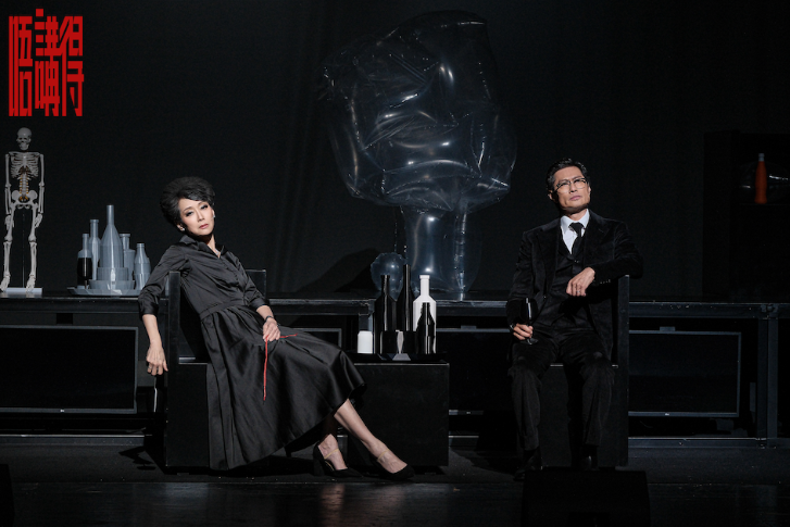 《唔讲得》以一对神经科医生夫妇的语言战争为切口,层层推进,展现看似完美的婚姻下隐藏着的丧子之痛和无法言说的秘密。丈夫与女学生到底是什么关系?儿子的车祸由谁引起?多年前的老同学忽然到访揭开一个谎言后,夫妻俩是否还能继续?当观众在剧情的迷宫中努力寻找真相时,下半场的叙事却开始一路“放飞”,现实的门扉轰然关闭,荒诞的剧场在黑暗中启幕。