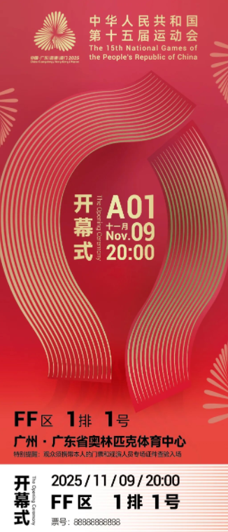 11月9日晚,十五运会隆重开幕。由省广集团精心设计的开幕式门票惊艳亮相,这张承载深厚文化底蕴与创新巧思的“文化名片”,成为传递赛会精神、彰显地域气质的重要载体。