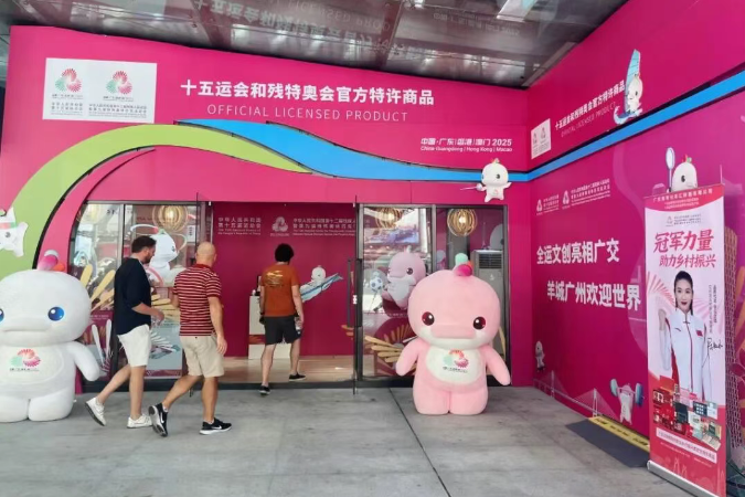 在十五运会开幕前,第138届中国进出口商品交易会在广州举办,同样盛况空前。值得一提的是,在广交会展馆B区,十五运会和残特奥会官方特许商品店格外引人注目,构成了一个独特的文化消费空间。南粤集团所属广东南粤分享汇控股有限公司(以下简称“南粤分享汇”)以其丰富多样的全运主题特许商品惊艳亮相现场,吸引了众多国内外宾客的目光。