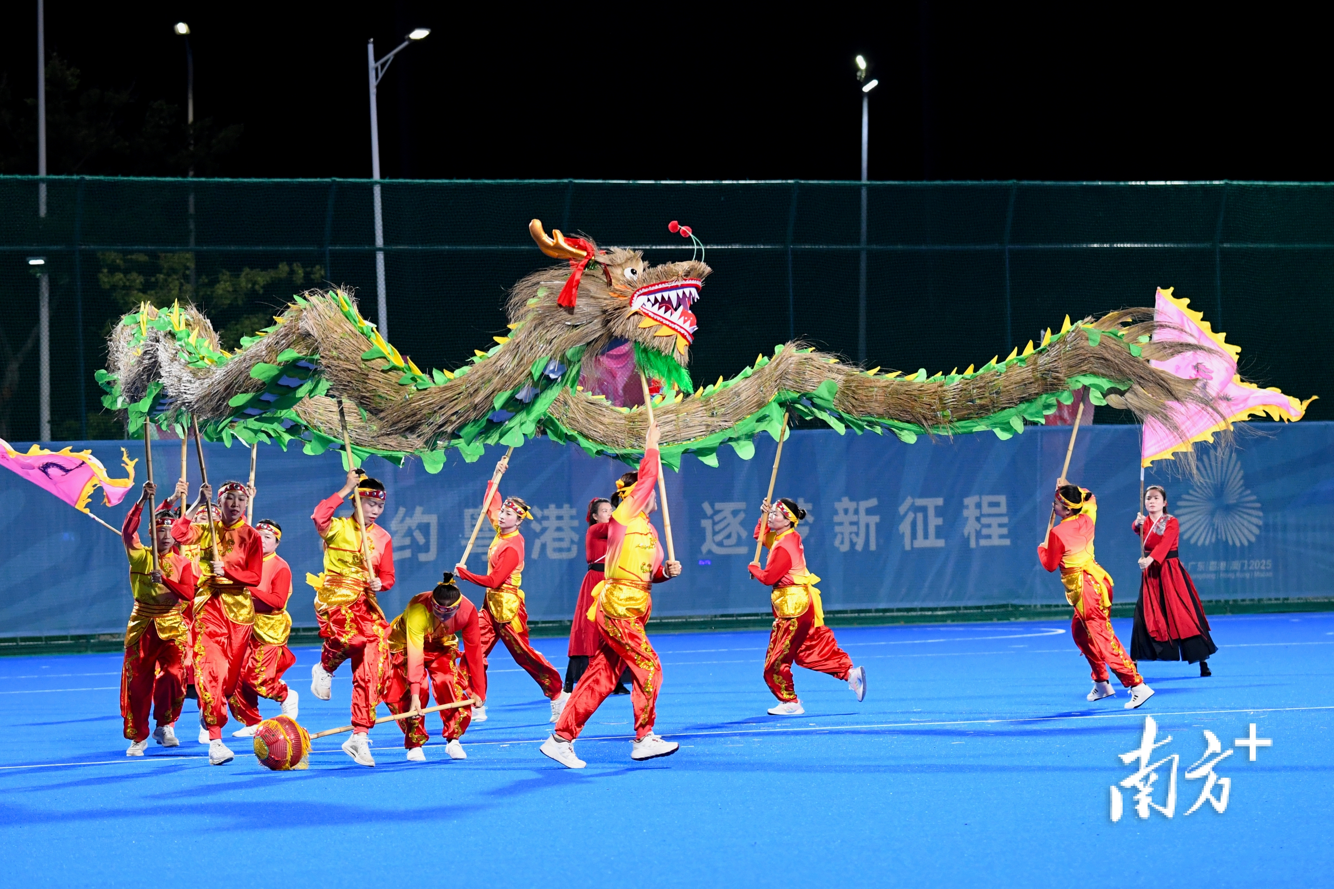云浮将非遗项目搬上比赛中场环节,图为《舞茅龙》。