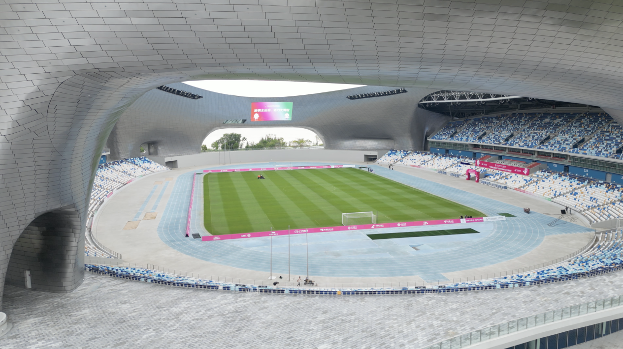 30日,South记者与“香港01”记者来到佛山市顺德区,探馆德胜体育中心。作为十五运会足球(女子成年组)、篮球项目(女子成年组)的比赛场地,这个被誉为大湾区“鸟巢”的地标性建筑正迎来它的高光时刻。