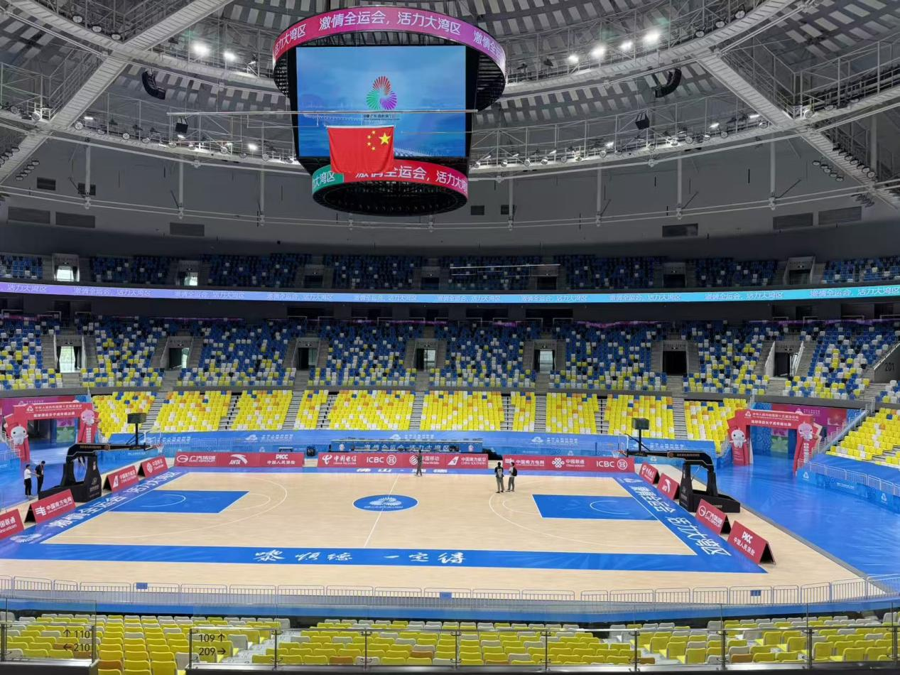 随着十五运会的比赛项目临近,德胜体育中心已准备就绪。踏入可容纳2万名观众的综合体育场,眼前是一片绿意盎然、平整如毯的标准足球场。草皮养护人员正驾驶精密的剪草机,确保场地处于最佳竞技状态。综合体育馆更显专业与活力,这座拥有12000个座位、符合NBA比赛标准的体育馆,规模与设施在国内均属一流。专业的体育照明系统全部开启,光线均匀明亮。场馆中央,巨大的LED屏幕正流光溢彩。