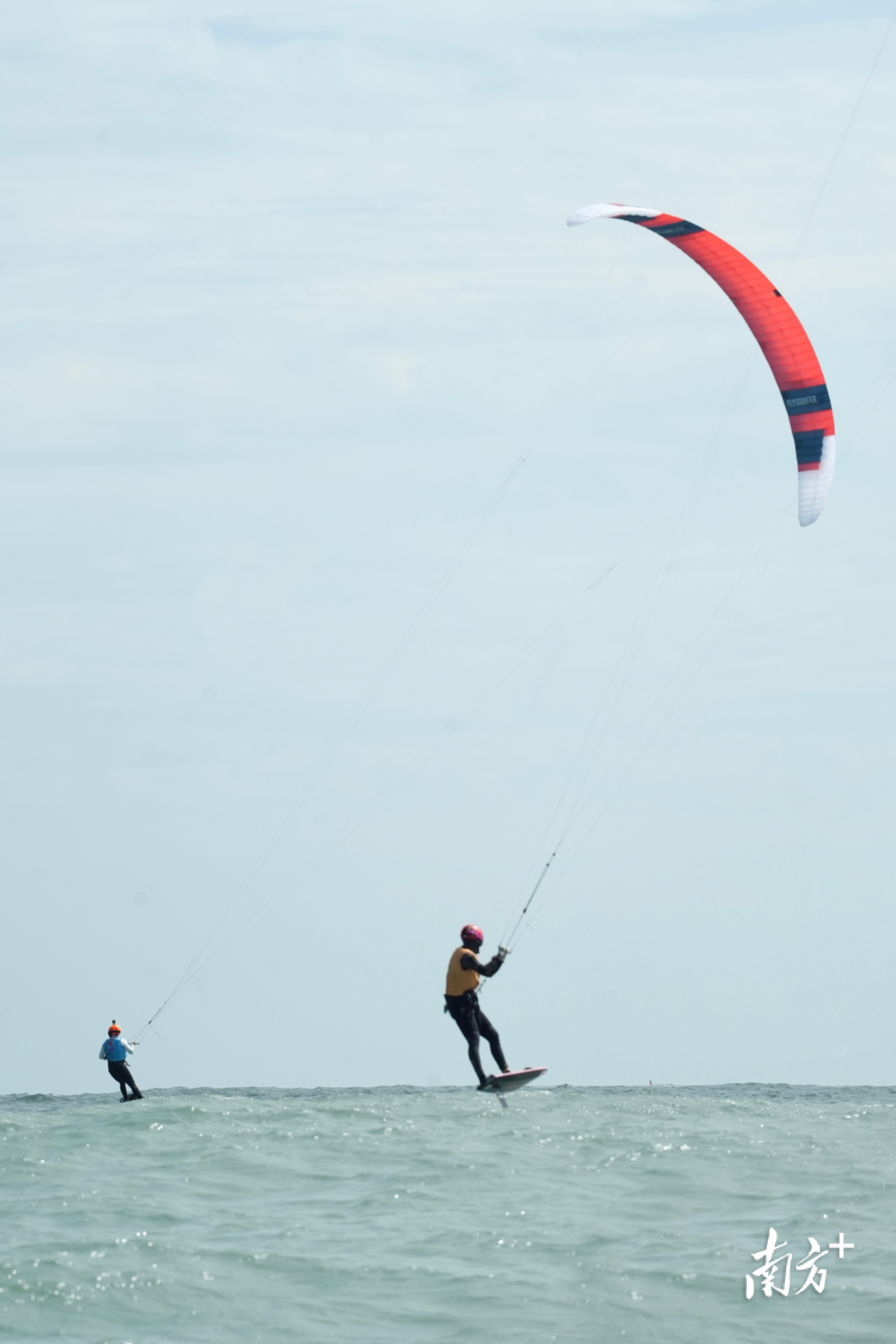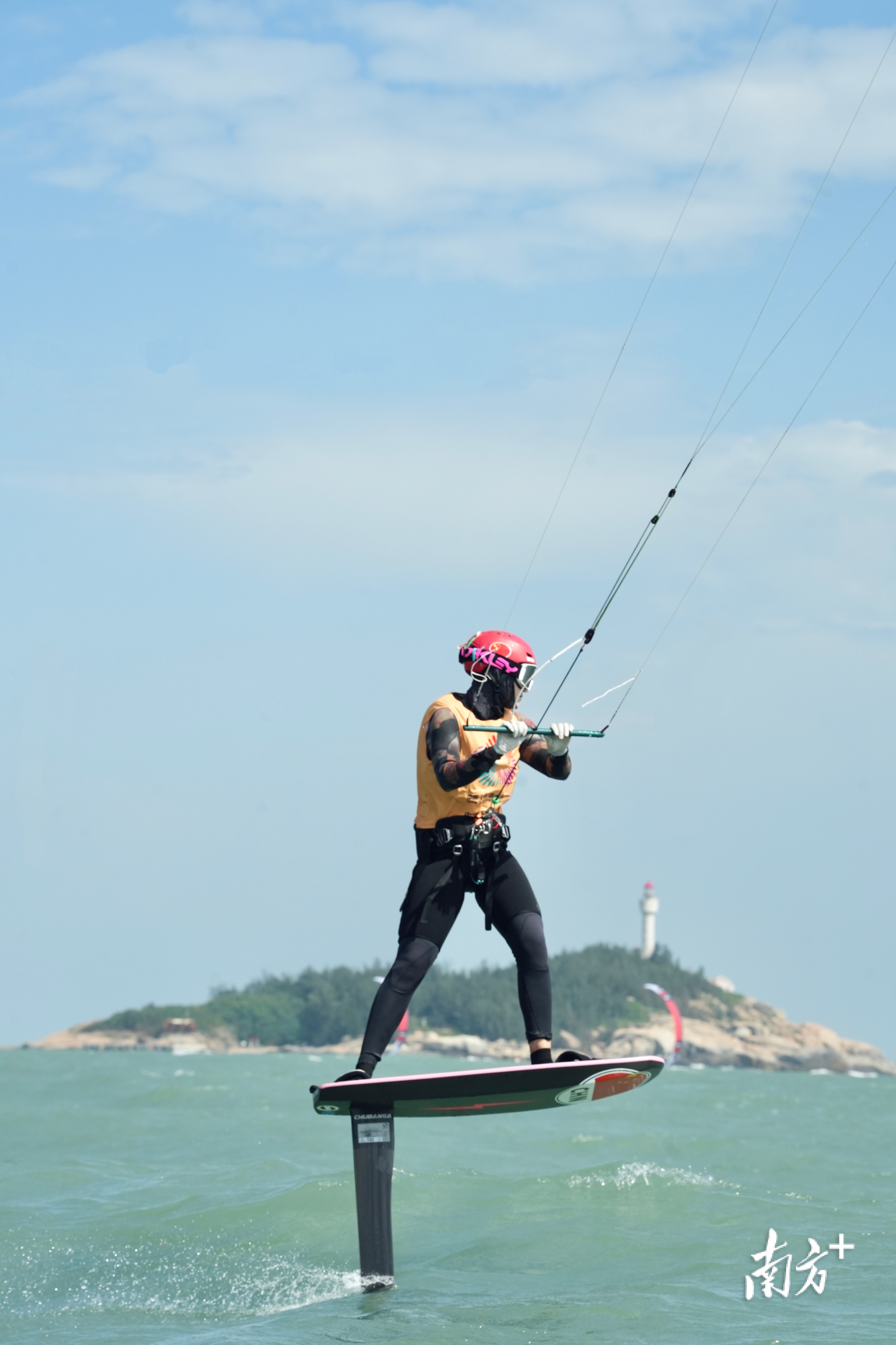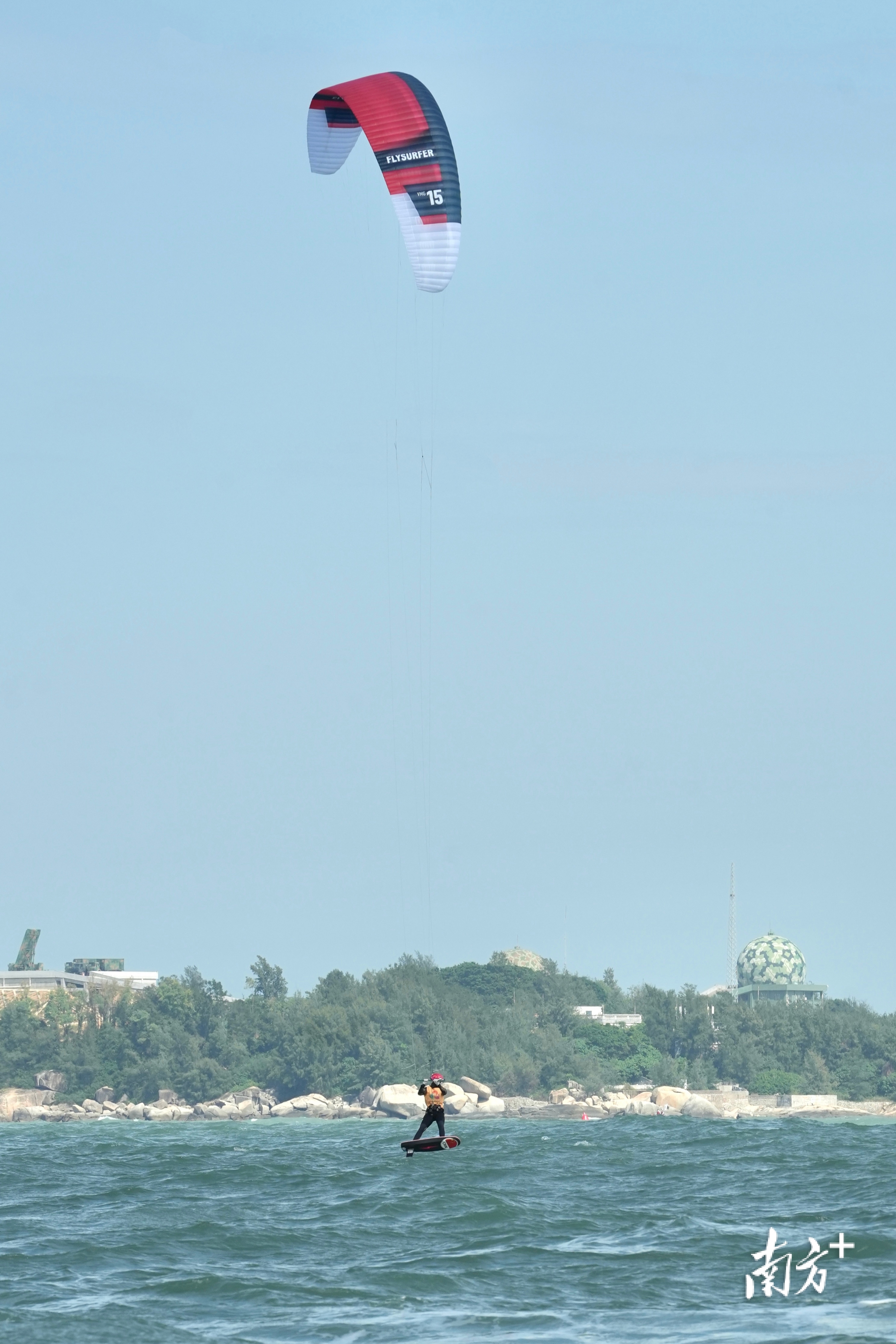 男子水翼风筝板级:上海队选手黄齐滨得冠军;山东队选手张浩然得亚军;福建队选手杨荣煜得季军。
