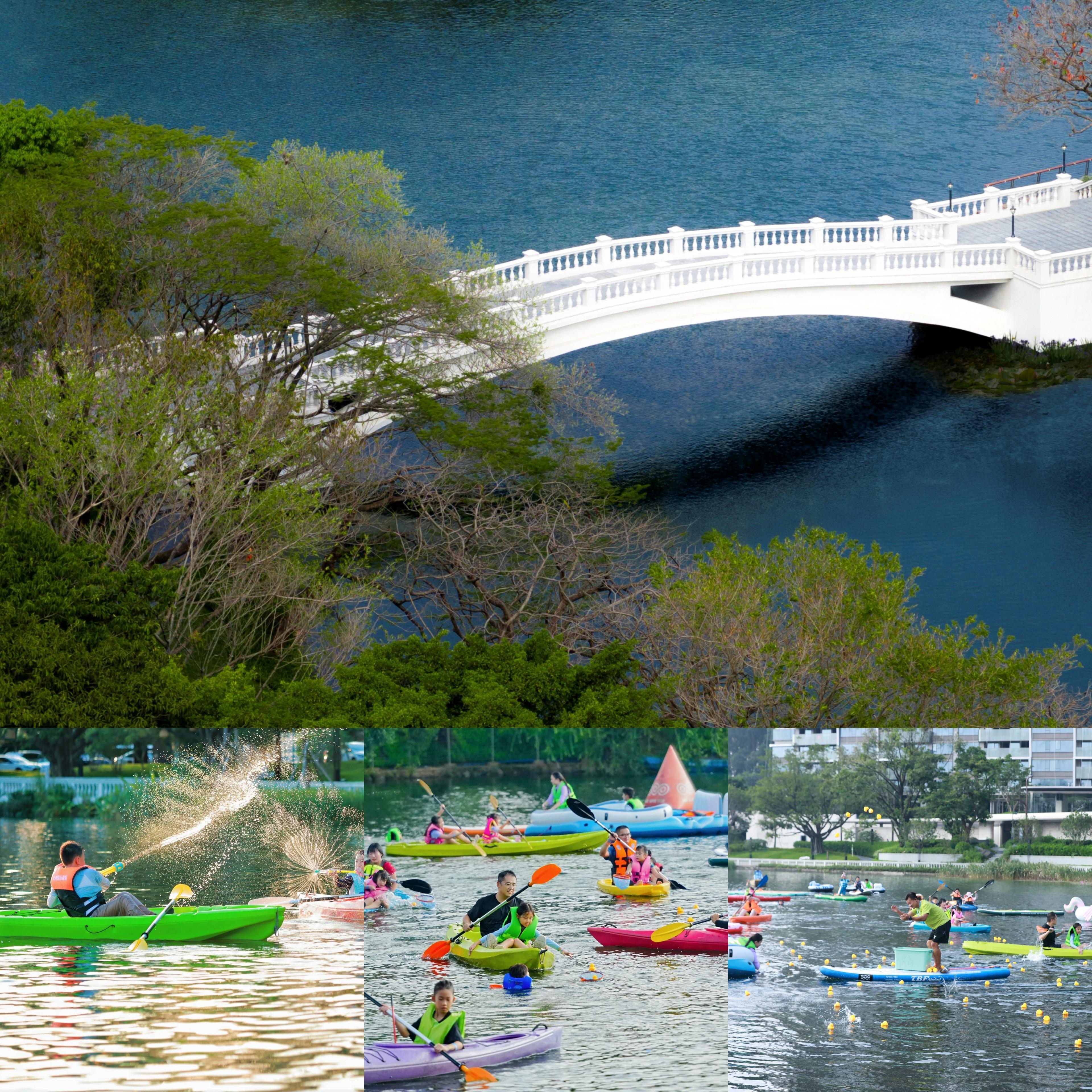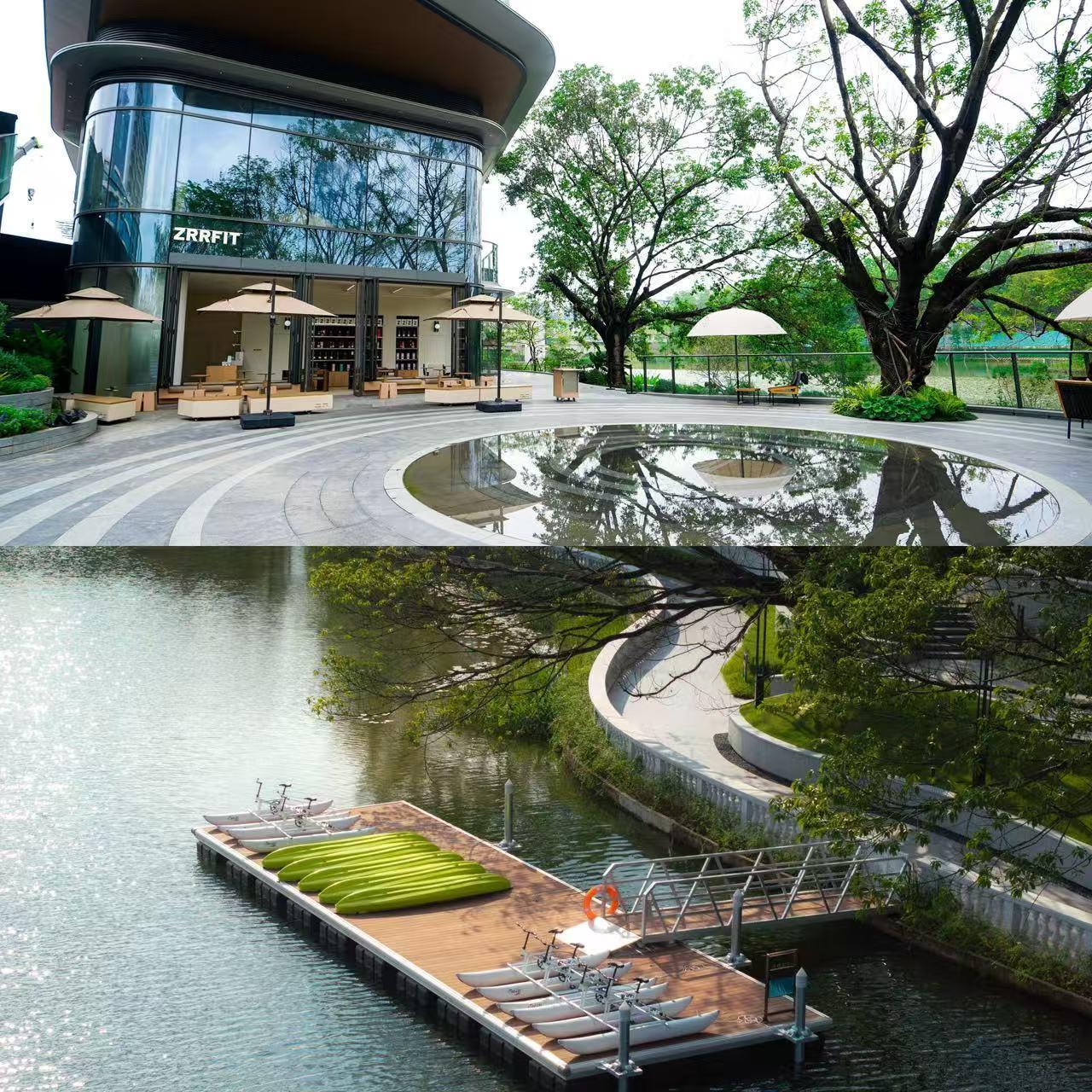 实景图。为了治理双湖,越秀地产观樾团队奔赴成都麓湖取经,先是清淤改善水质,继而采用“低碳沉水生态修复技术”,构建三重净水自循环系统。经过半年治理,水鸟陆续回归这片占地约5.3万㎡的双湖,业主从此在家门口也能观鸟,轻松拿捏桨板、皮划艇等休闲水上运动。而越秀观樾,也成为广州首个在社区的湖里即可参与多项水上运动的高端湖居住宅,与隔壁的奥体中心理念相得益彰。