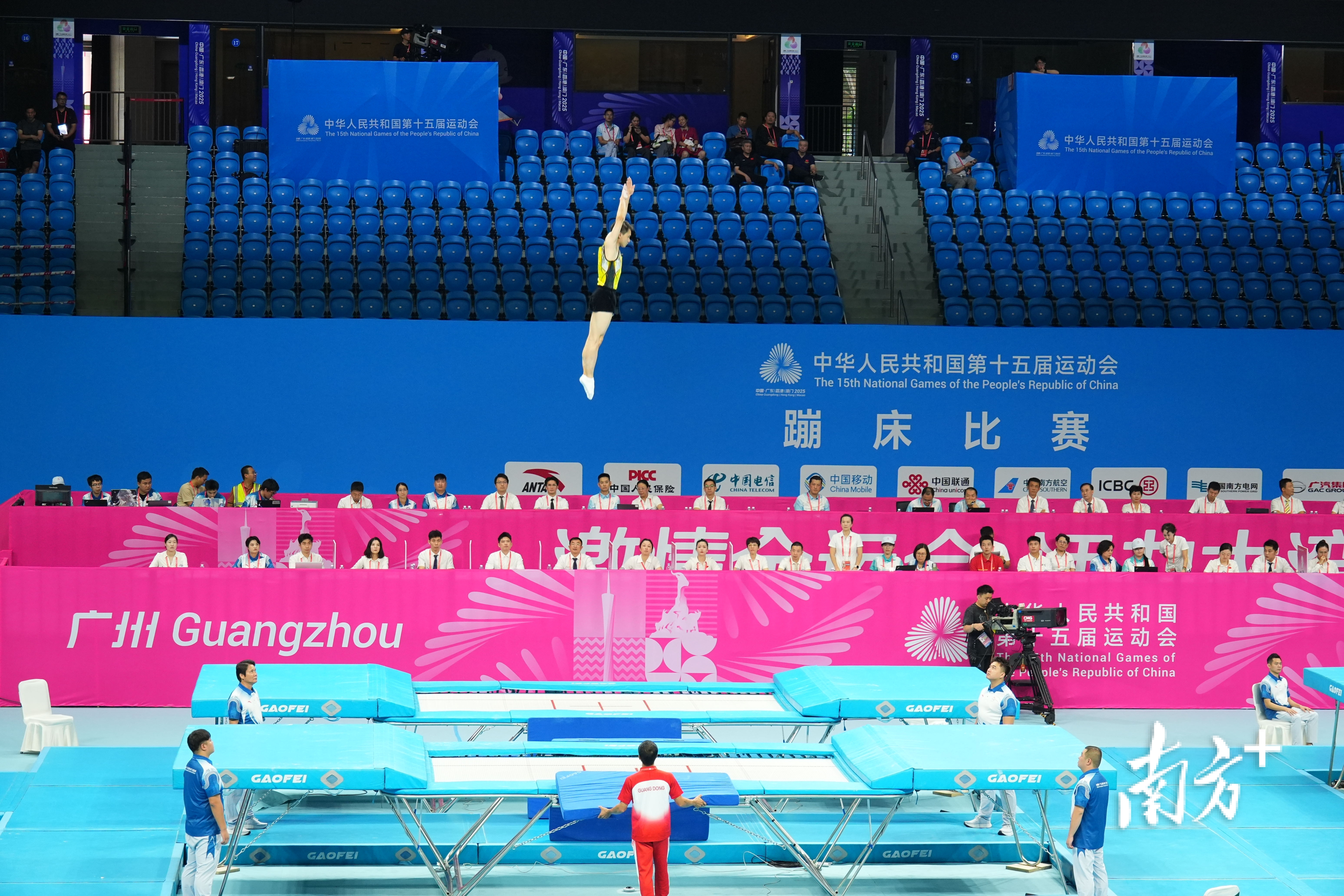 相较于郭斯伟,陈炳钺是幸运的。他曾以运动员身份参加了2017年、2021年两届全运会;今年,他则首次以辅助裁判员的身份参赛,负责保护运动员安全。从运动员到裁判员,从专注于自身动作到防止运动员受伤,作为“新人裁判”的陈炳钺说:“看到他们从蹦床上跳起来那一刻,我比他们还要紧张!”